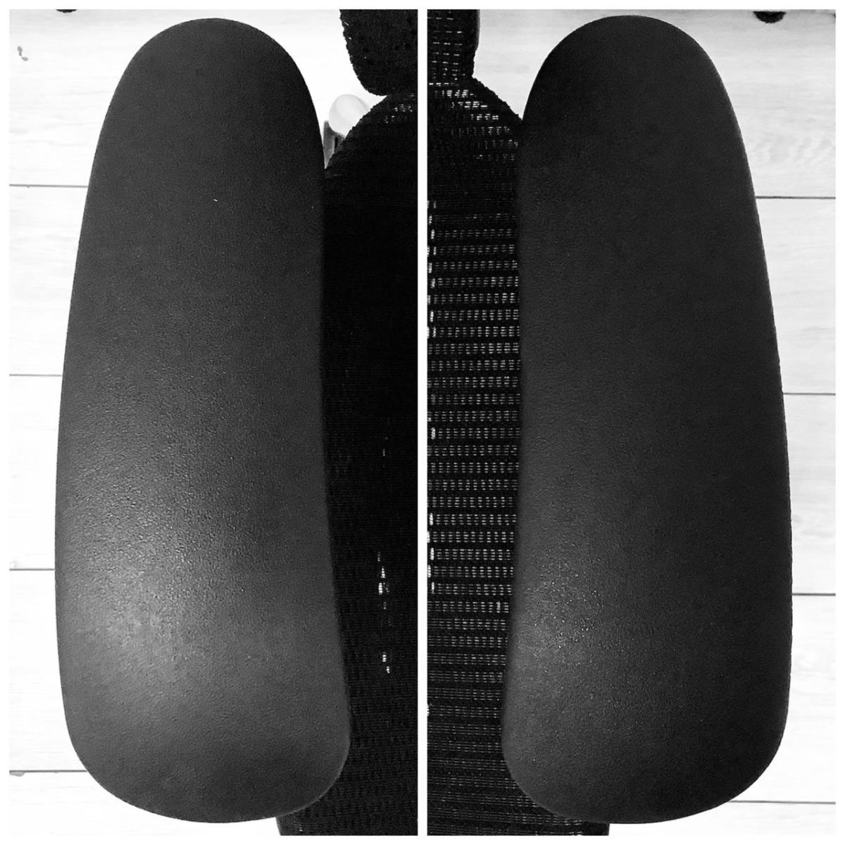 目立つキズや凹み:肘パットに摩耗が見受けられます。