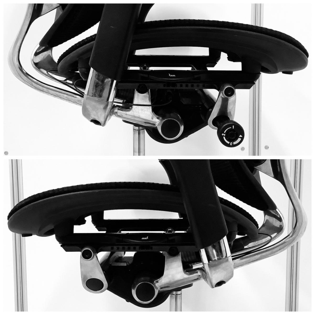 - 座面の前後スライド調整レバーで操作(前後50mm分調整で)できます。(グラデーションサポートメッシュタイプを除く)