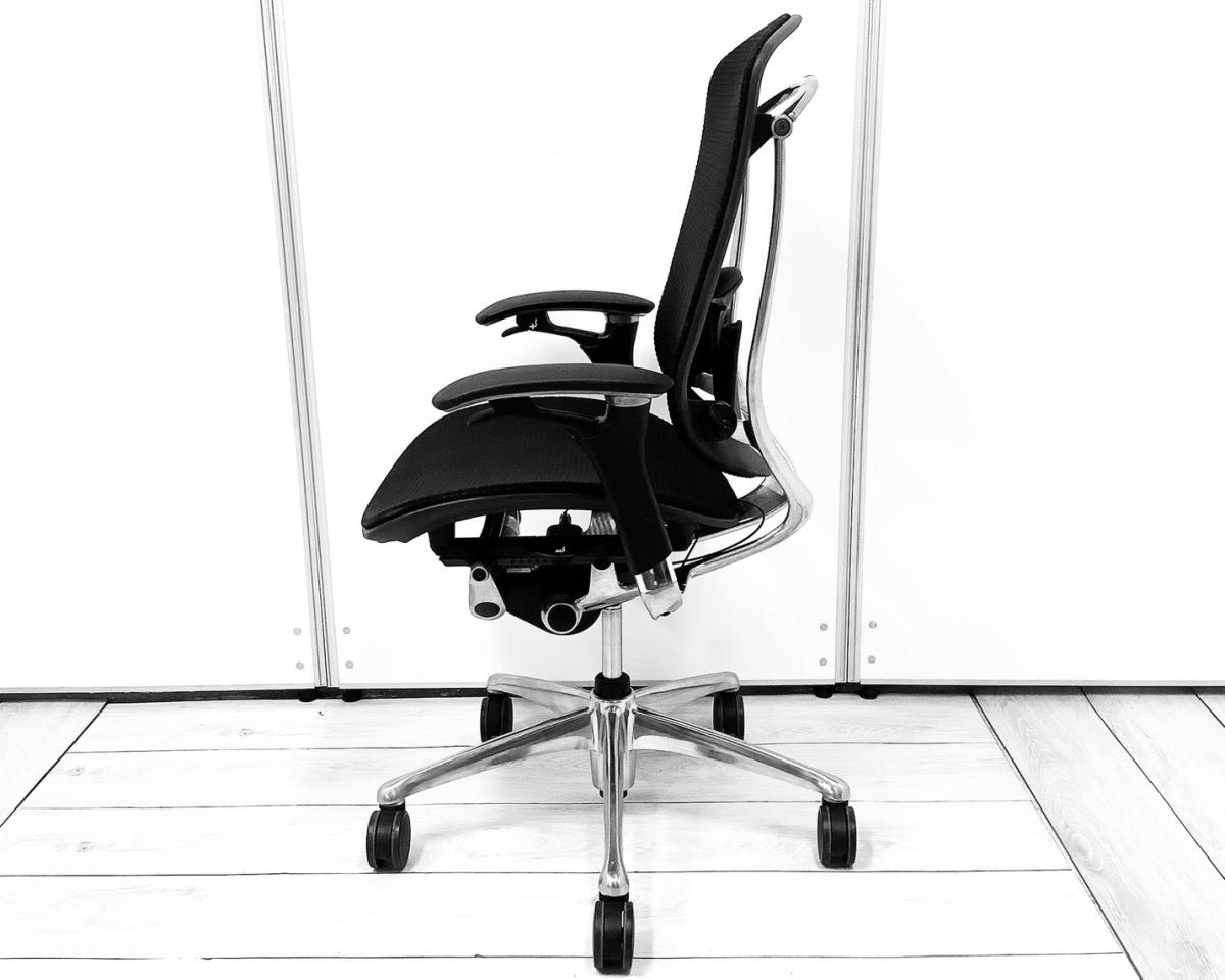 【世界で認められた革新的タスクチェア!人間工学に基づいた快適な座り心地を実現!】■オカムラ(okamura)製 コンテッサチェア 肘付ハイバック ■可動肘・ハンガー・ランバーサポート付 ■背面メッシュ ■ブラック