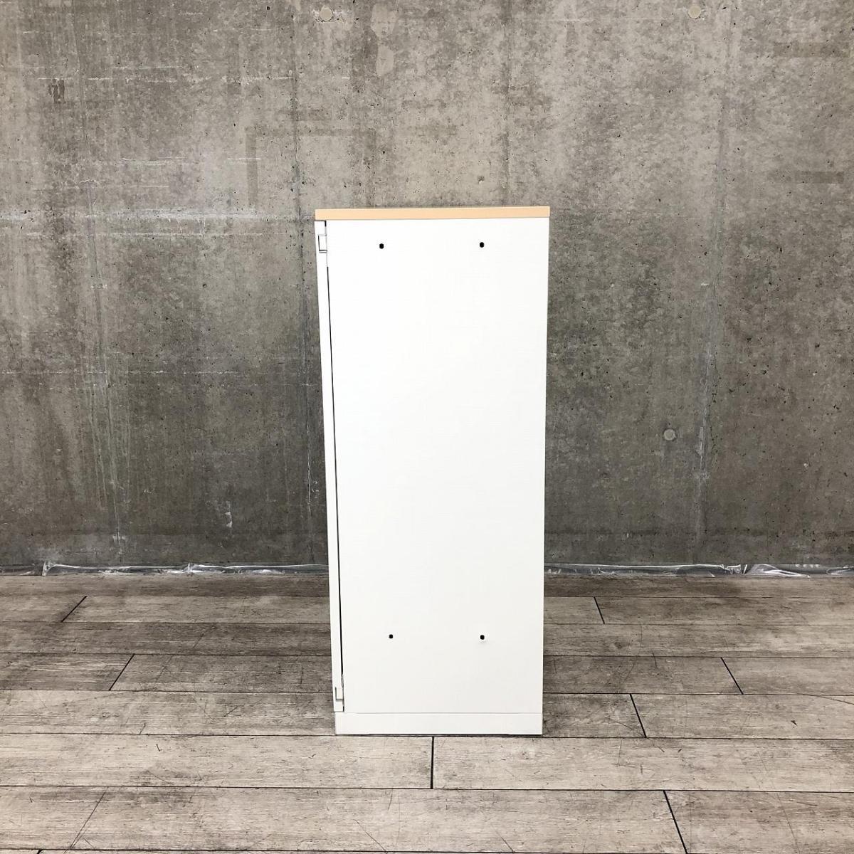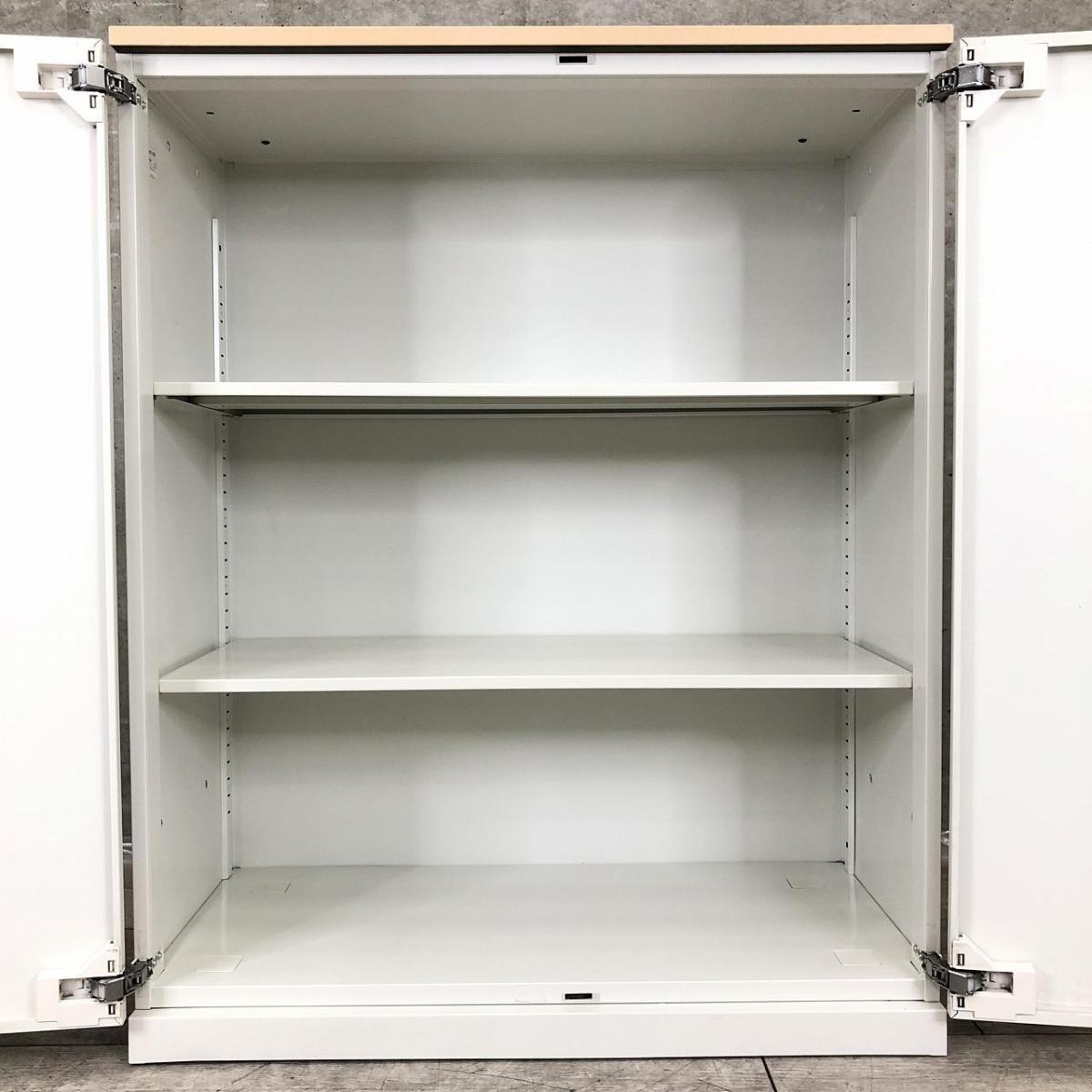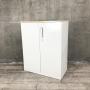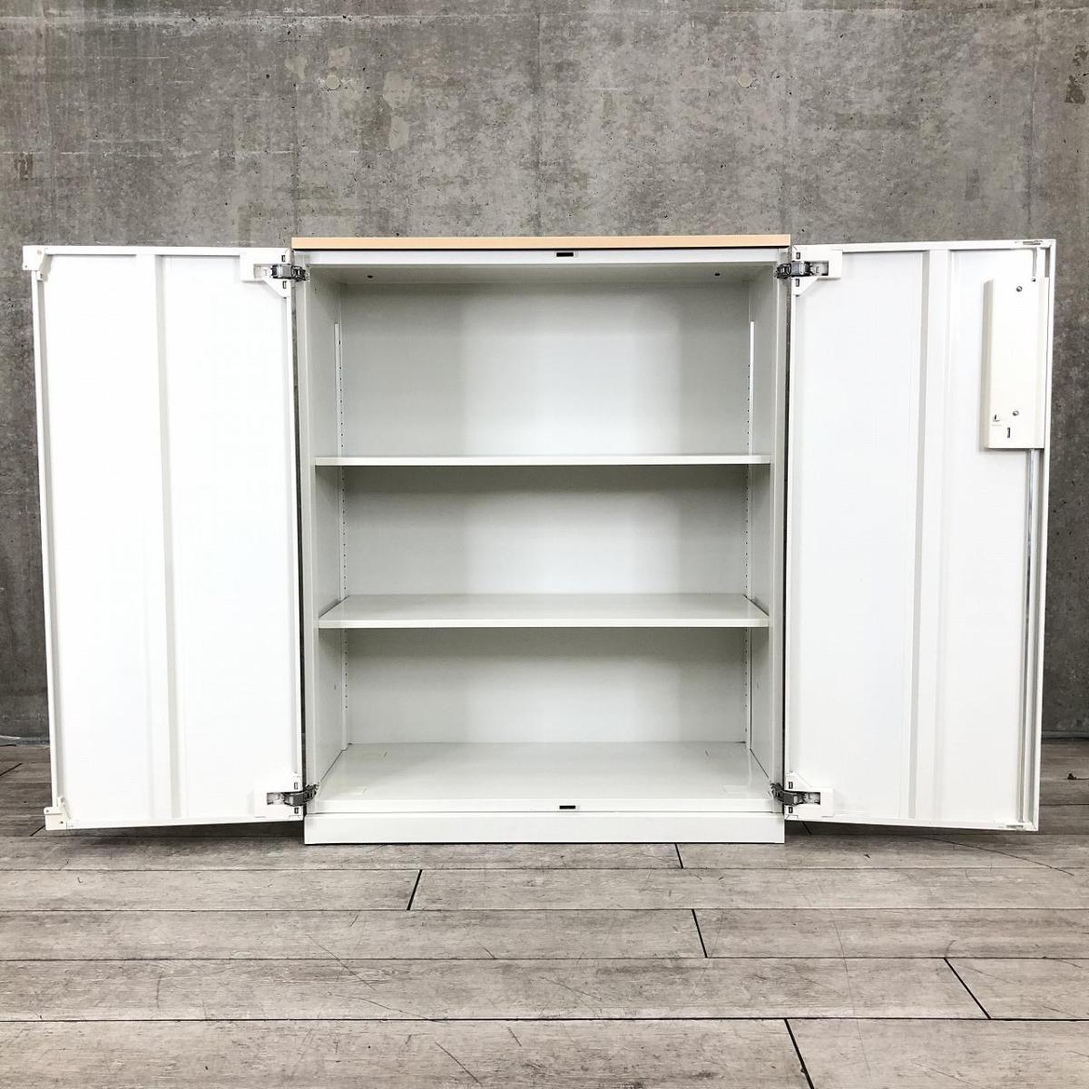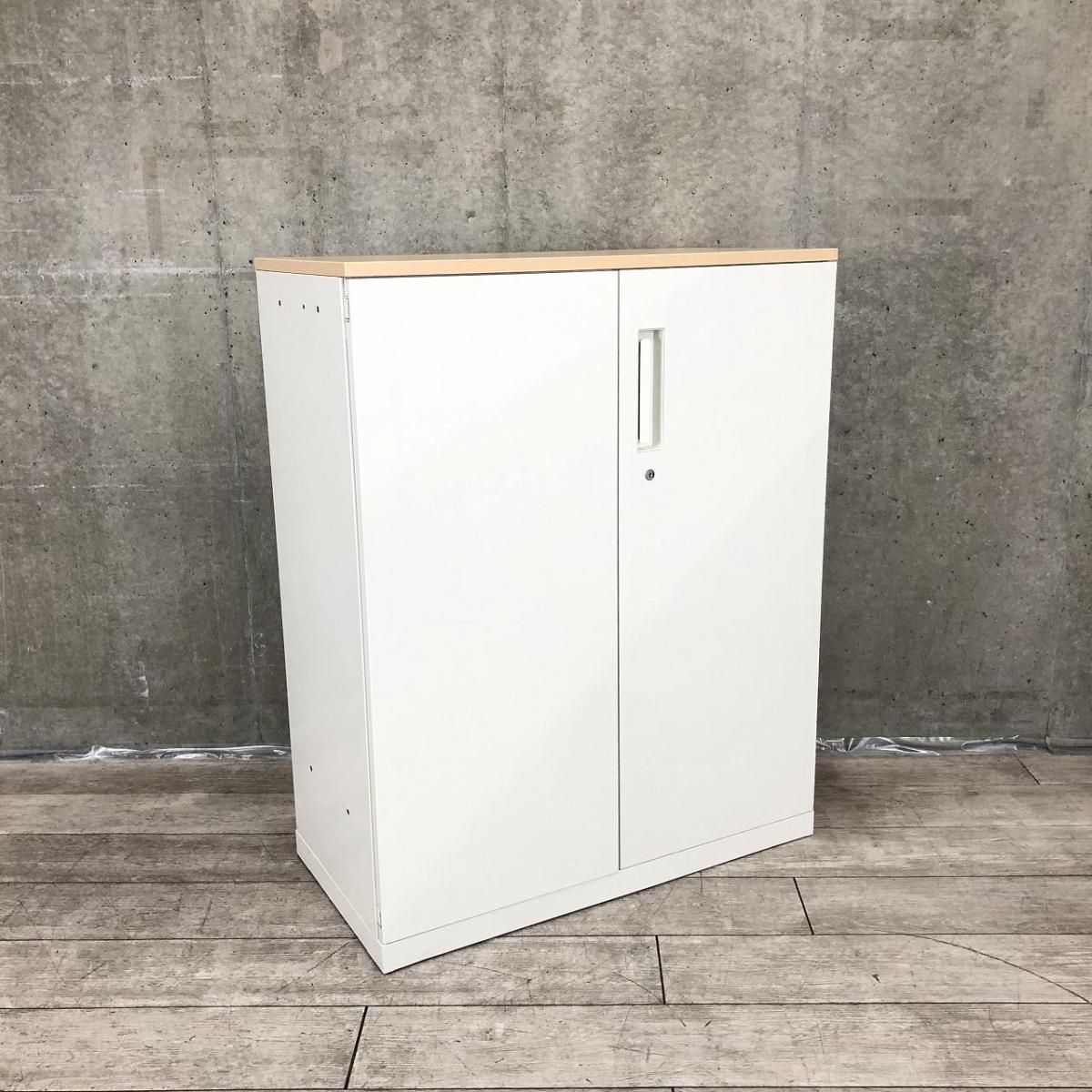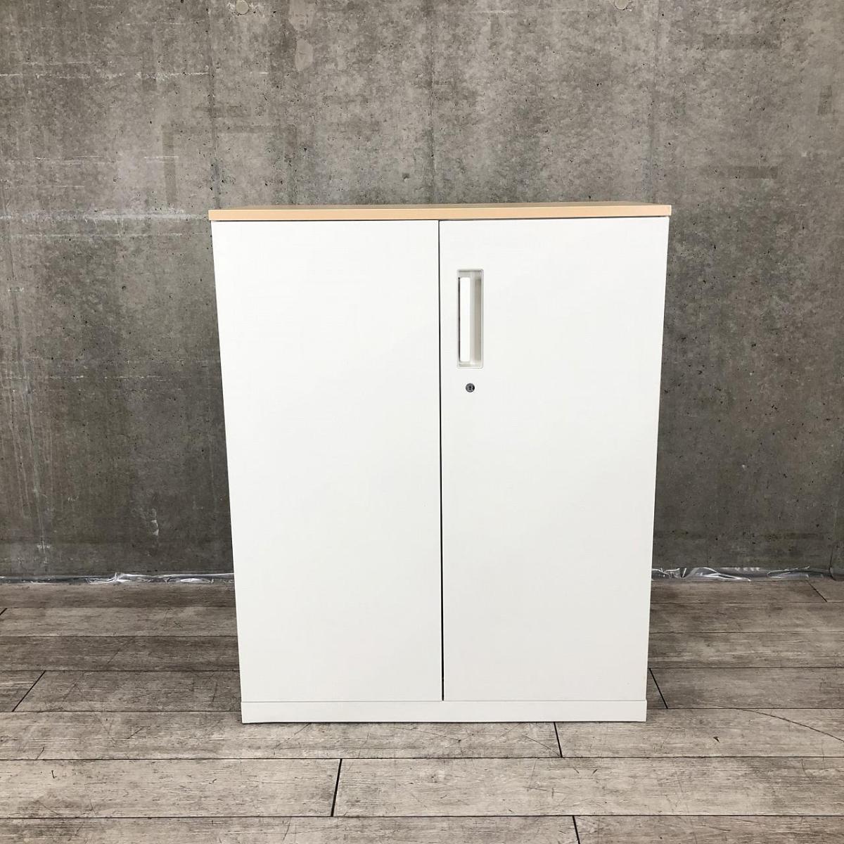 【在庫セール品・2台限定】【T1】■プラス(PLUS)製 レガーティオ(REGATEO)シリーズ 両開き書庫 ローキャビネット ■シリンダー錠 ■本体:ホワイト 天板:木目ナチュラル【収納物がひとめで分かる両開き戸タイプのホワイト書庫!】- 新大阪店