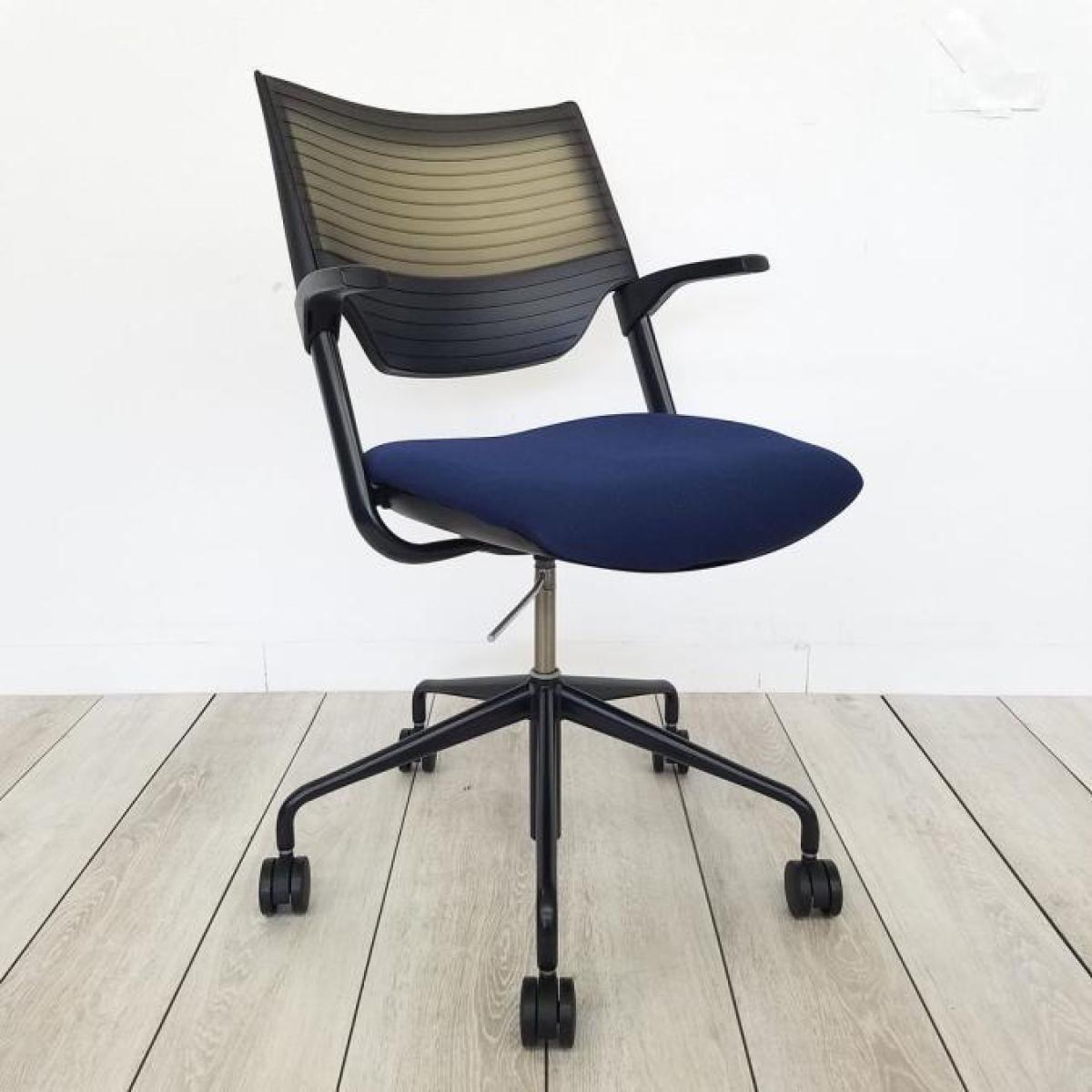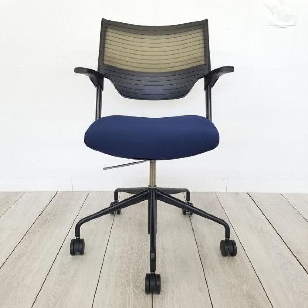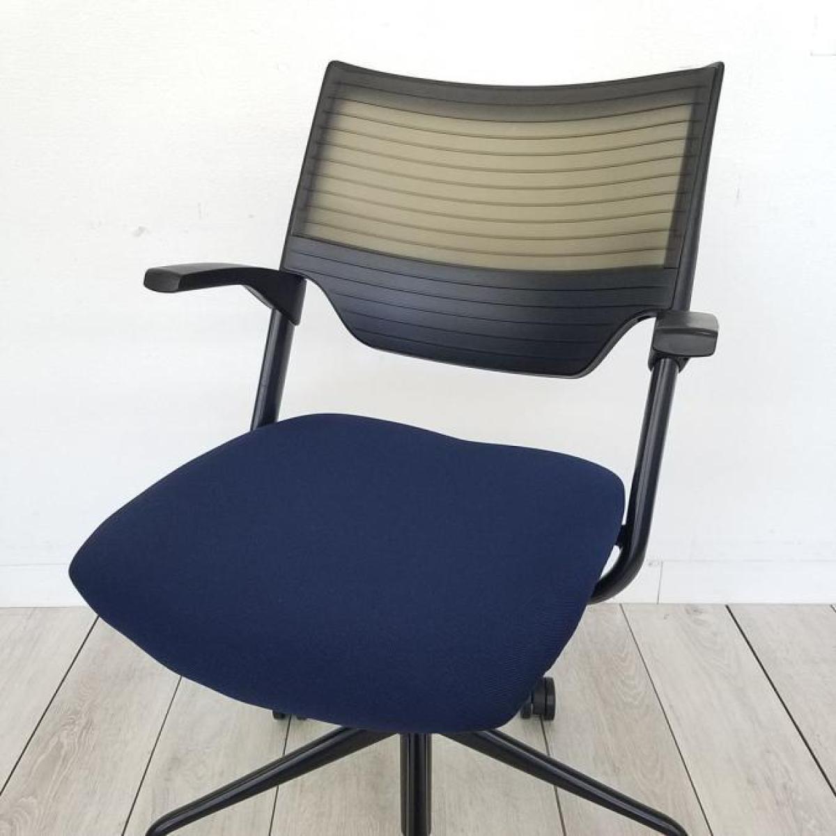 イトーキ製のレクシブチェアが入荷!中古 ネスティング ミーティング キャスター付き 収納 エラストラマーバック ネイビーブルー【T1】- オフィスチェア店