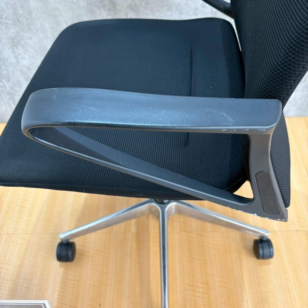 ■オカムラ(okamura)製 ■モード(mode)チェア ■肘付き ■ミドルバック ■クロスバックタイプ ■デザインアーム ■ブラック ※肘掛けの部分に擦れ傷、塗装剝げがございます。【弊社使用欄:A01035635】【SN】