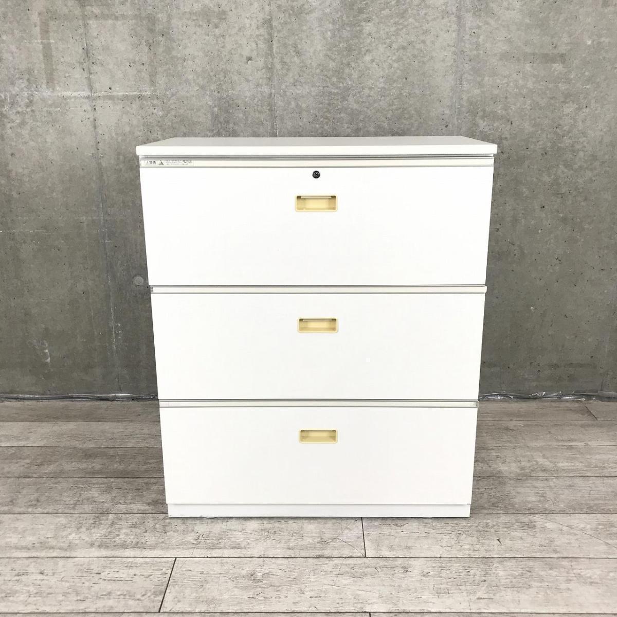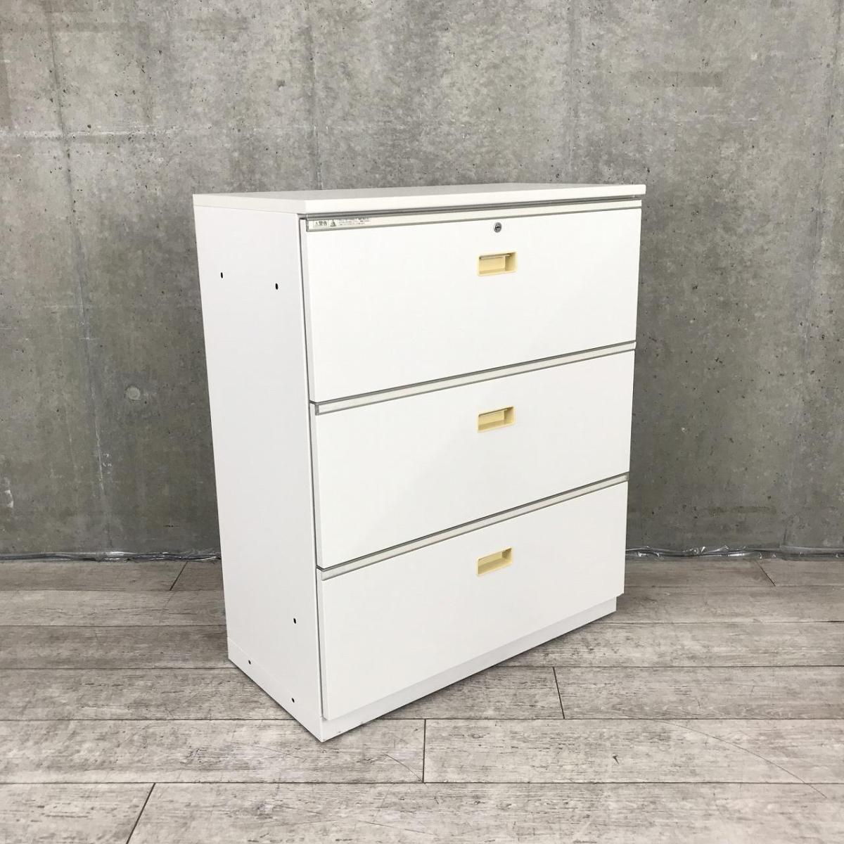 【人気3段ラテラルの小さめサイズ!天板付きのローキャビネット!】■イトーキ(ITOKI)製 シンライン(THIN LIN)シリーズ 3段ラテラル書庫 ローキャビネット ■天板付き ■ホワイト ■シリンダー錠 ※ラッチ日焼け有【AD】