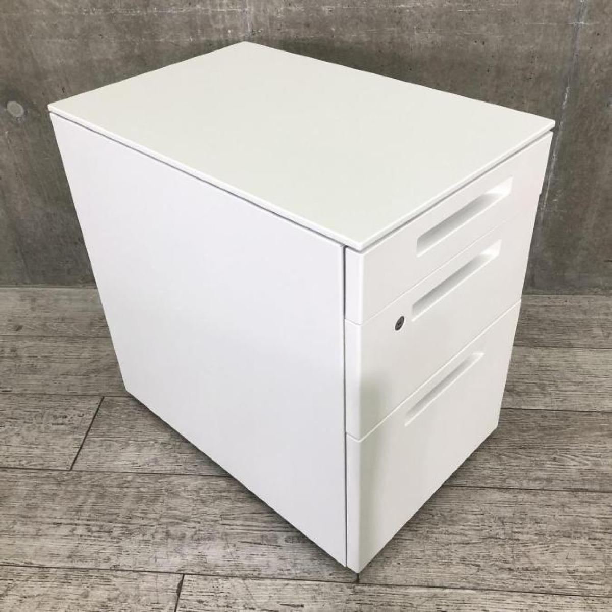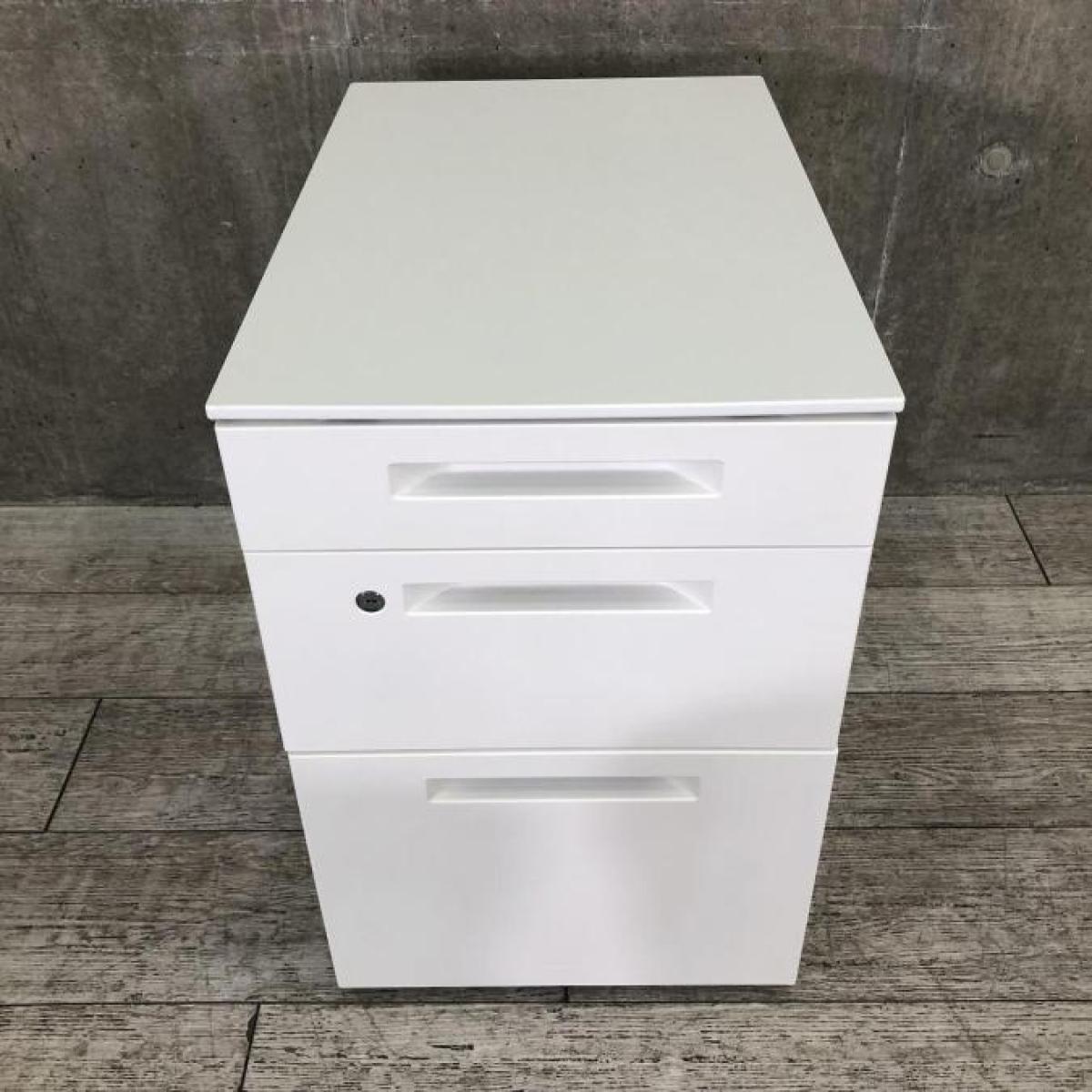 【平机・フリーアドレスデスクのお供に!人気のホワイトカラー3段ワゴン!】■コクヨ(KOKUYO)製 iSシリーズ 3段ワゴン デスクインワゴン H600mm ■ホワイト ■シリンダー錠【2512】弊社使用欄【A01042738】- 埼玉本店