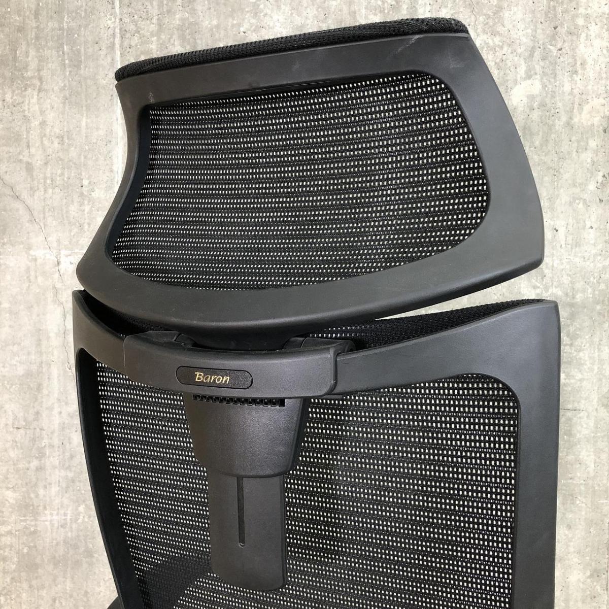 【オフィスの執務室、会議室におすすめ!】■オカムラ(okamura)製 バロン(Baron)チェア 肘付き ハイバック ■背・座面メッシュ ■可動肘・ヘッドレスト付き ■ブラック【硬めの座面が大人気!国産メッシュチェアの代表格!】