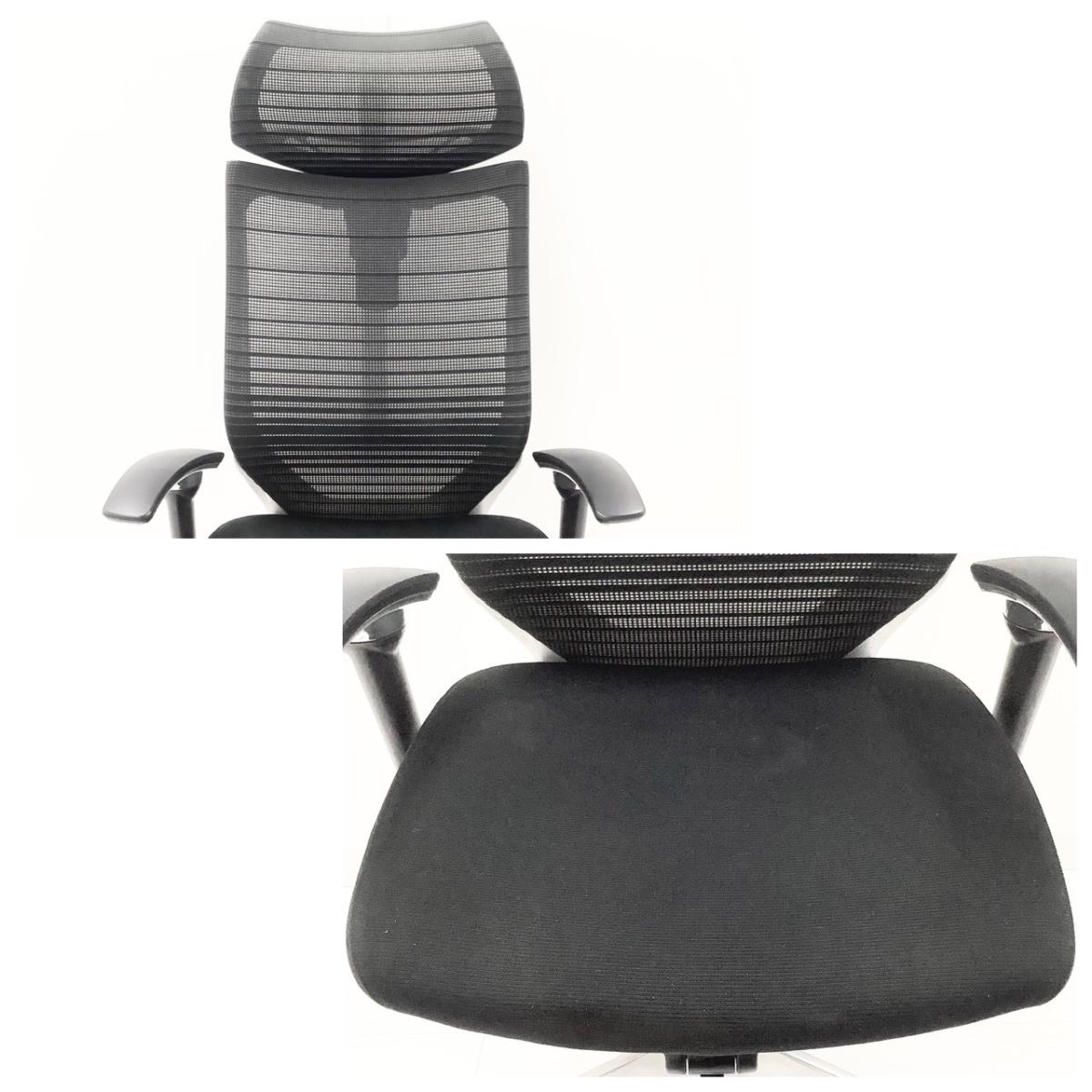 【オフィスの執務室、会議室におすすめ!】■オカムラ(okamura)製 バロン(Baron)チェア 肘付き ハイバック ■背・座面メッシュ ■可動肘 ■ヘッドレスト付き ■ブラック【硬めの座面が大人気!国産メッシュチェアの代表格!】【AD】
