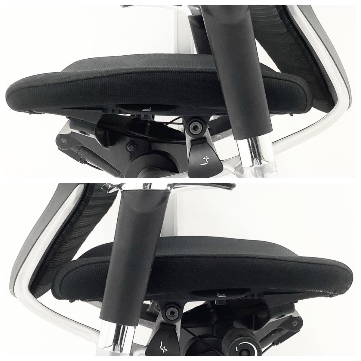 もちろん座り心地もコンテッサの直系ですから快適です。座面の素材はクッションとメッシュの2タイプあります。私、個人的には座面の中心部分でも外側でもテンションが変わらないクッション素材が、足を閉じても開いても快適なので推しです!"