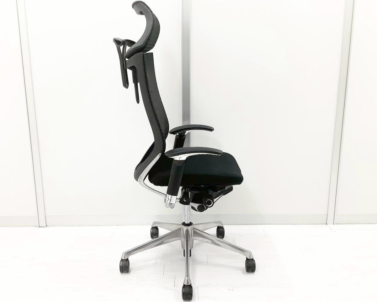 【オフィスの執務室、会議室におすすめ!】■オカムラ(okamura)製 バロン(Baron)チェア 肘付き ハイバック ■背・座面メッシュ ■可動肘・ヘッドレスト付き ■ブラック【硬めの座面が大人気!国産メッシュチェアの代表格!】