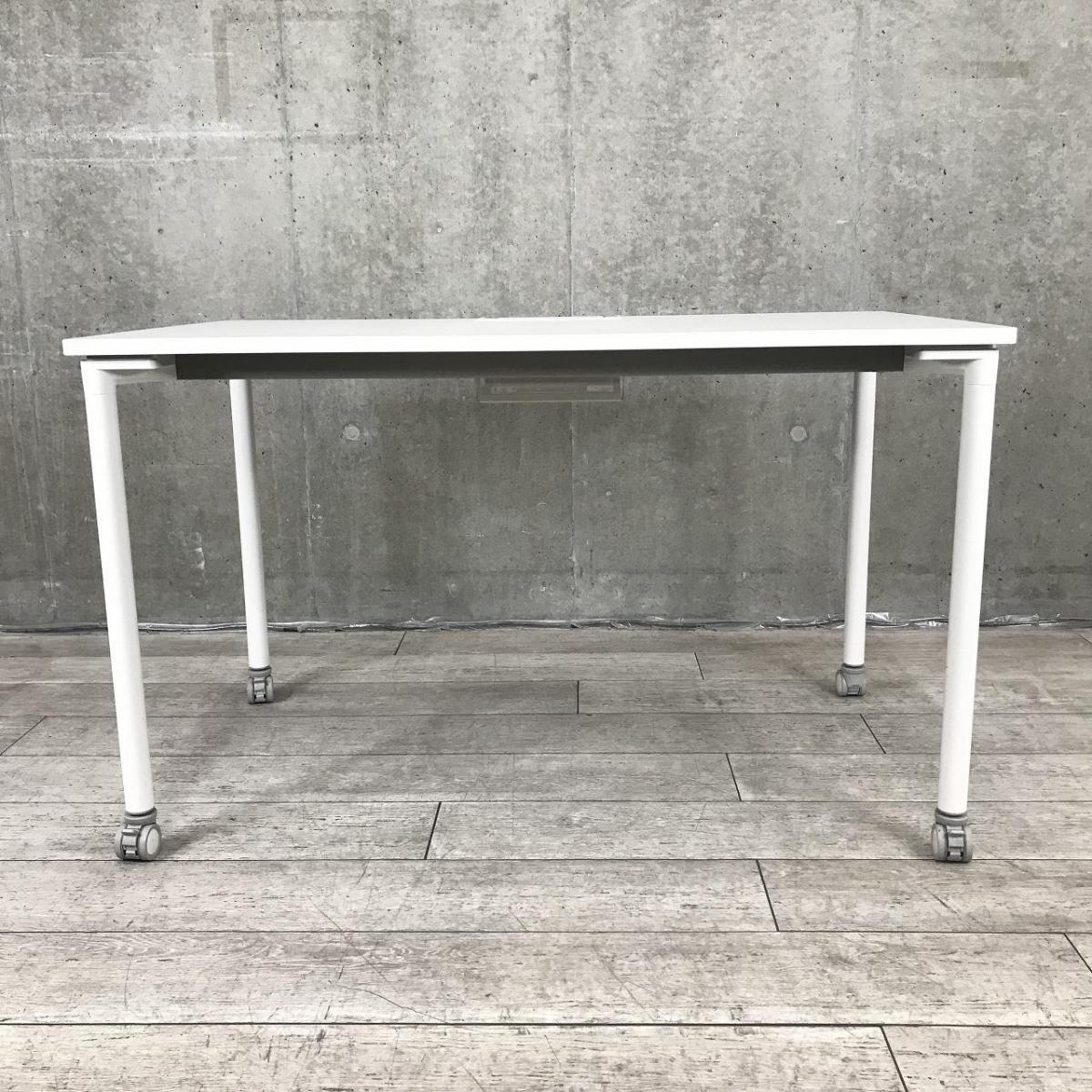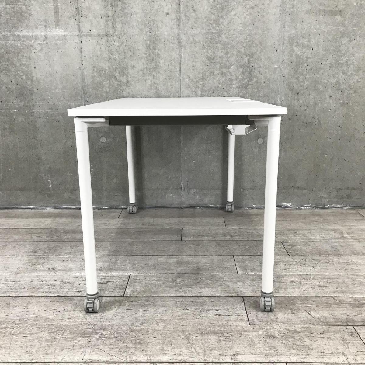 【在庫入替セール】イトーキ アクティブフィールド パーソナルテーブル(平机) 角型 キャスター脚 配線口タイプ 天板ホワイト×脚ホワイト