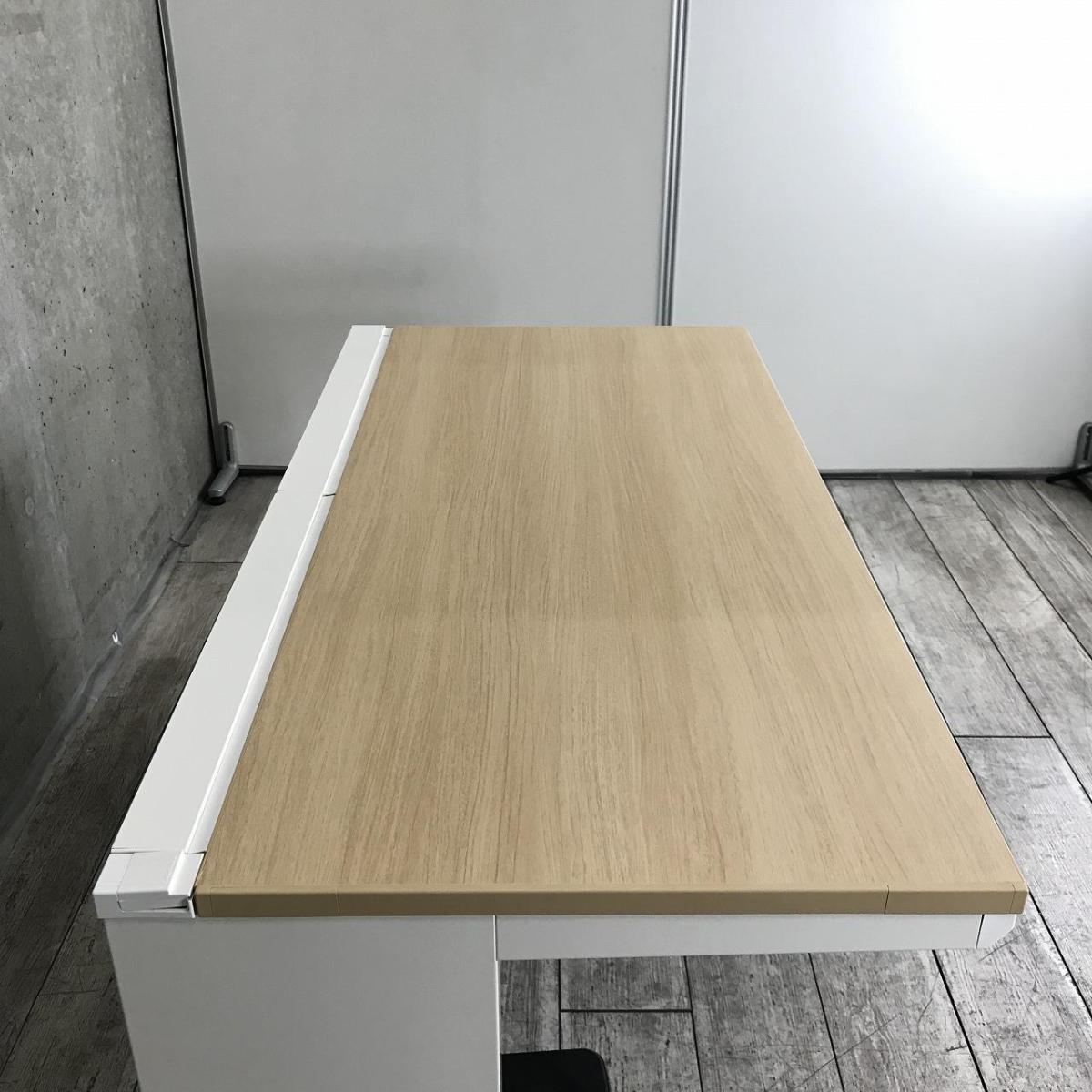 【在庫入れ替え】【ゆとりのあるワークスペースで作業効率アップ!】■オカムラ(okamura)製 アドバンス(ADVANCE)シリーズ 平机 引き出し無し W1400×D700×H720mm ■ホワイト / 天板:ナチュラル木目調