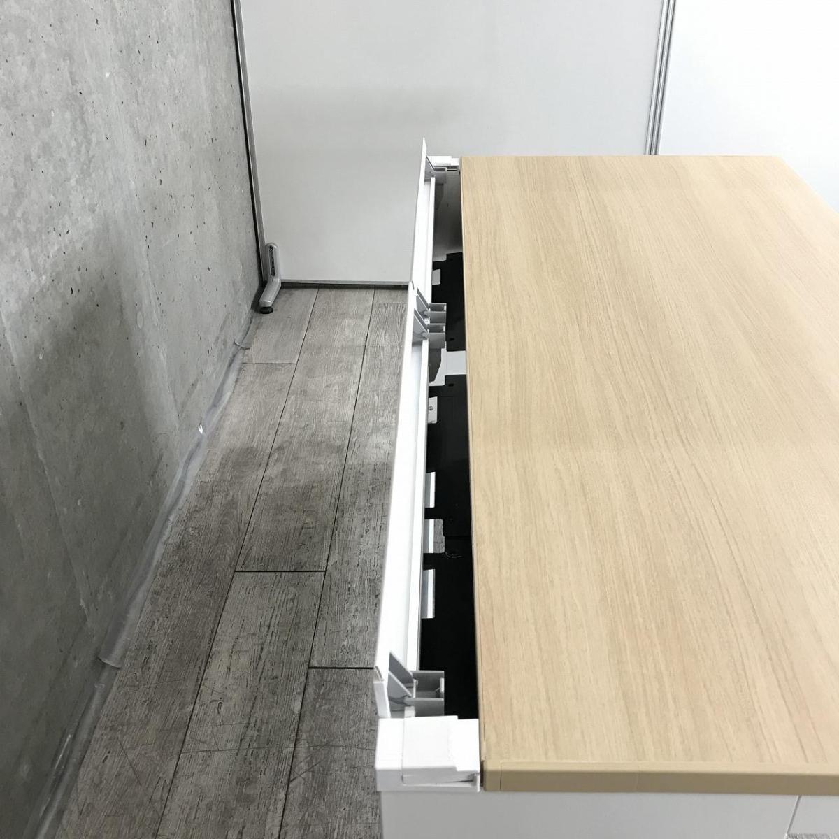 【定価約8万円】【起業や移転にオススメ!広々1400mm!人気の木目調天板で充実ワーク!】■オカムラ(okamura)製 アドバンス(ADVANCE)シリーズ 平机 W1400㎜ 引き出し付 ■天板:木目ナチュラル/本体:ホワイト