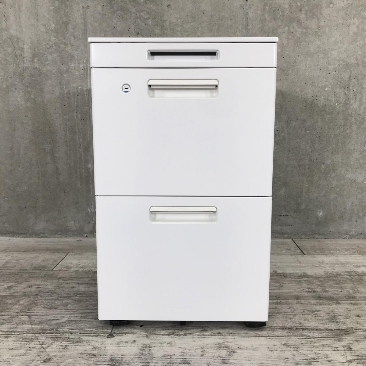【フリーアドレスデスク用として!手荷物入れにも便利!】■コクヨ製 GTワゴン 3段ワゴン フリーアドレス用ワゴン H650mm ■ホワイト ■シリンダー錠 オフィスバスターズ神戸・三宮店