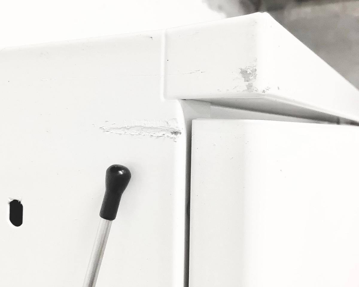 - 目立つ箇所あり傷・凹みが多数、深い傷・凹みが一部ある。(例、天板、正面、背部、サイド部分にある。)