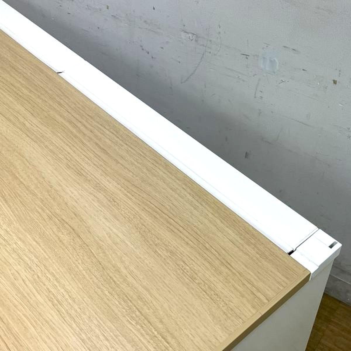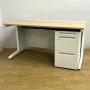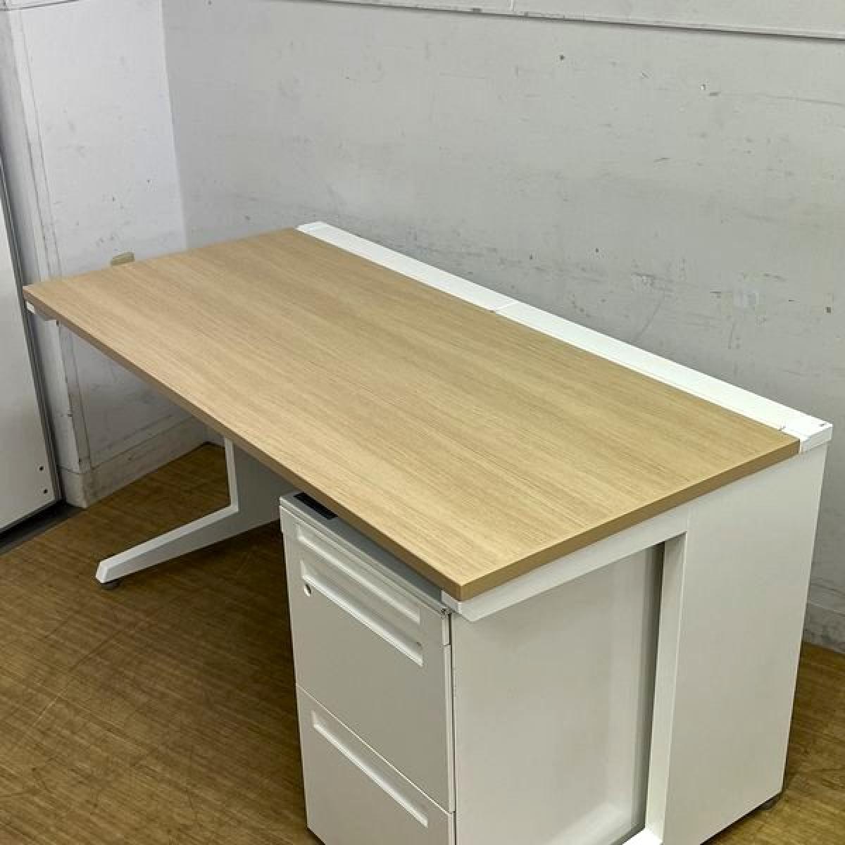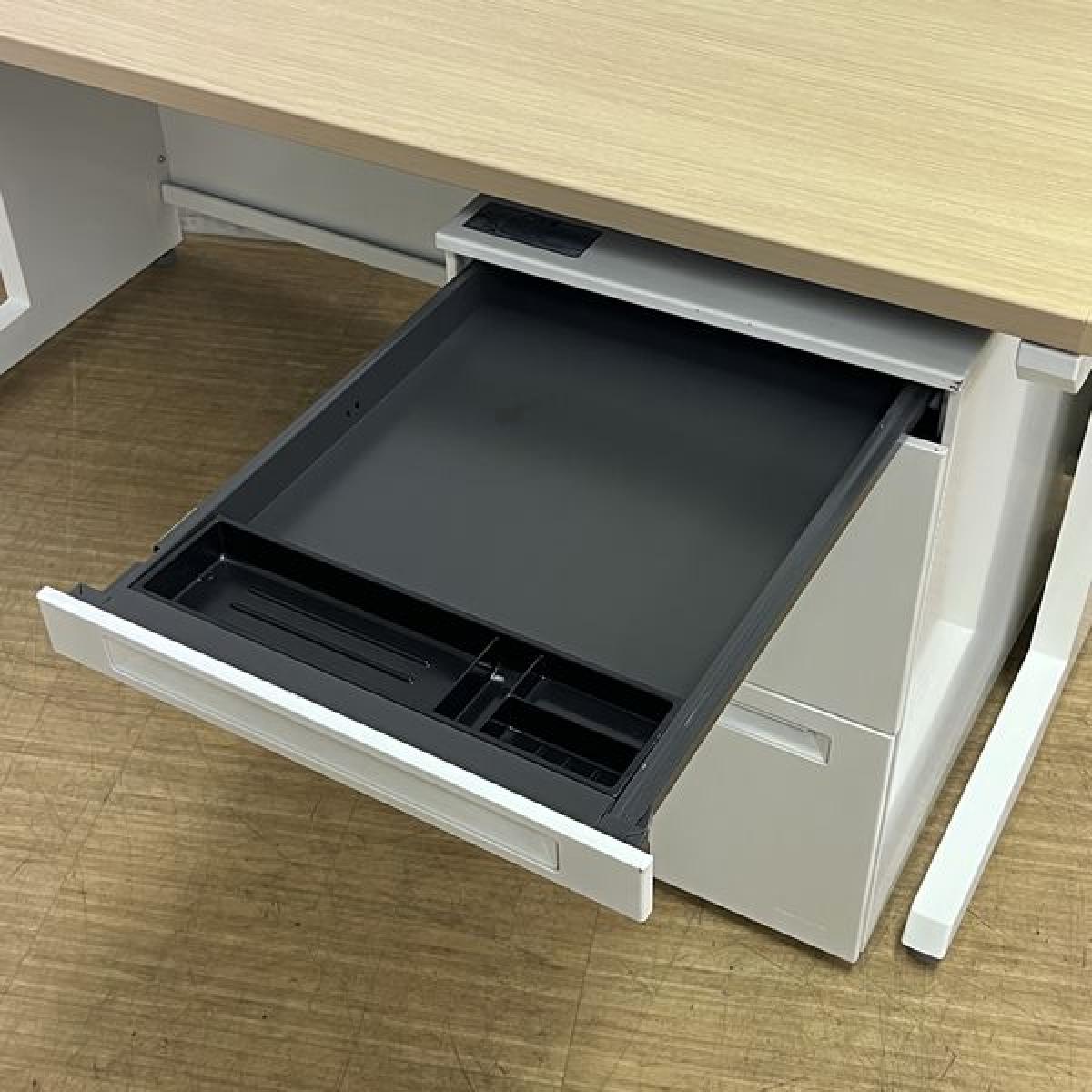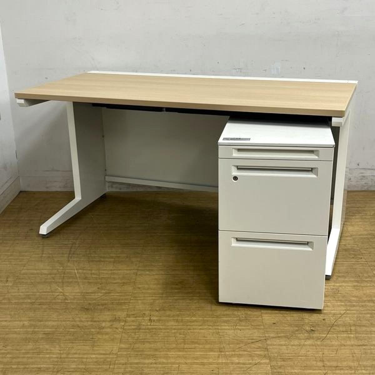 オカムラ アドバンスデスク 平机+3段ワゴンで疑似的な片袖机 センター引出し無し 明るいナチュラル天板 ゆったりめのサイズのW1400 鍵付き 【愛知・名古屋・豊田・静岡・浜松】
