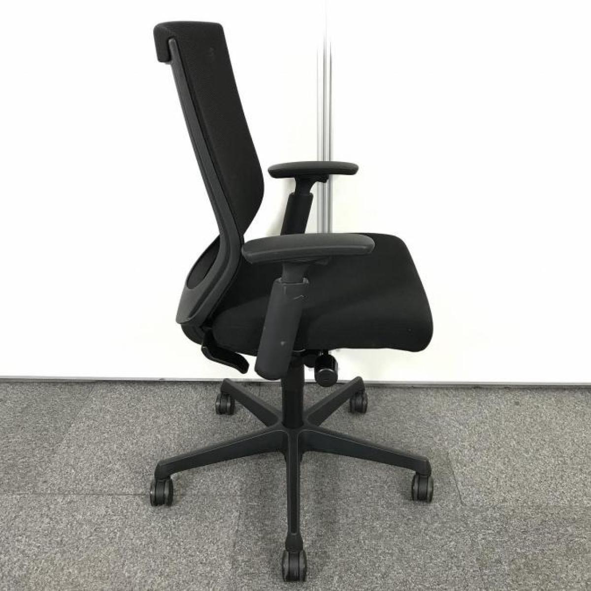 【からだにフィットする立体的なカーブのメッシュ!スタンダードクラスで人気上位のワーキングチェア!】■オカムラ(okamura)製 エスクード(ESCUDO)チェア 肘付ハイバック 背面メッシュ ■可動肘 ■ブラック【AD】- 足立・葛飾店
