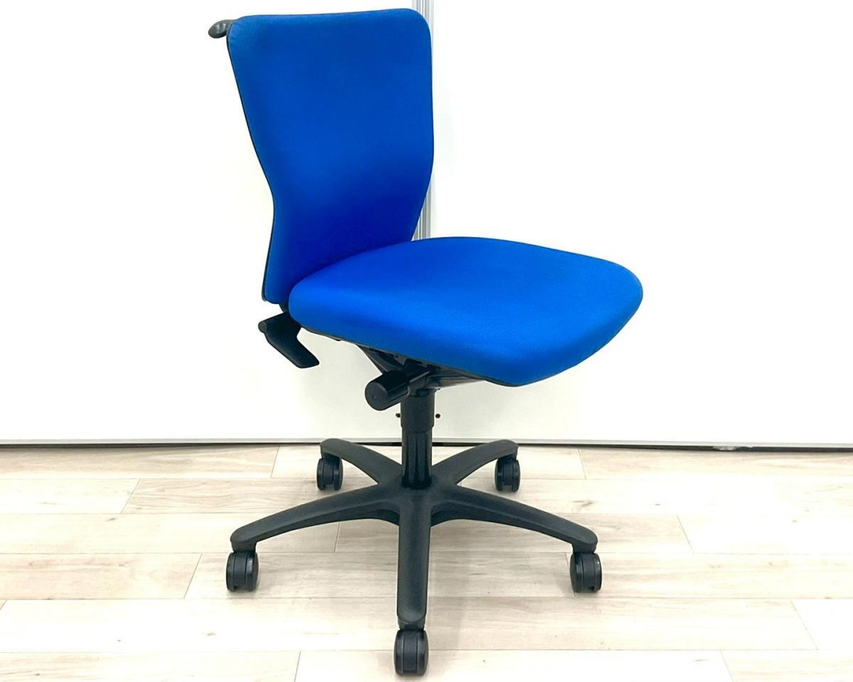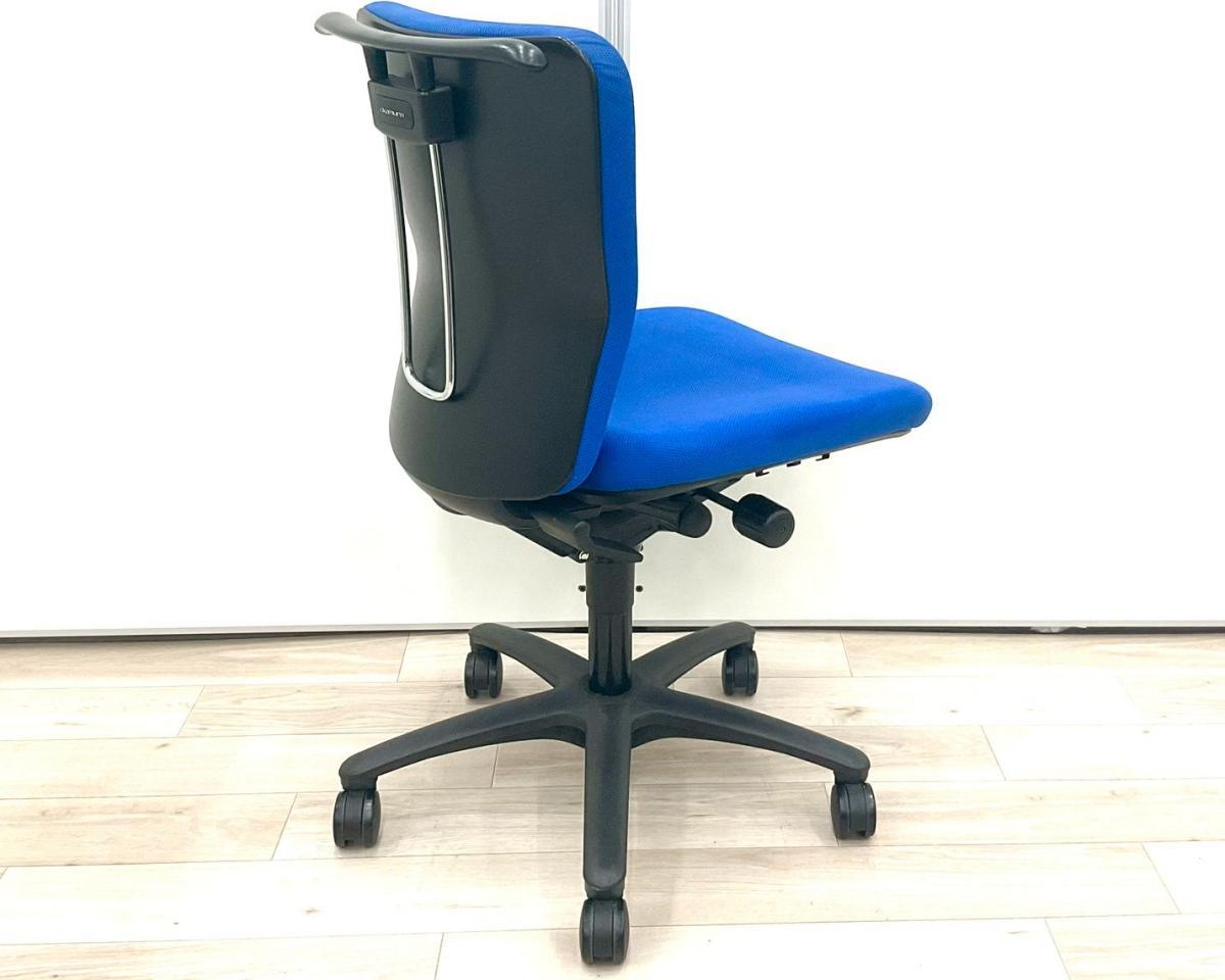 オカムラ カロッツァ 肘無しチェア ローバックモデル ダークブルー×ブラックフレーム ※使用感強め・一部の部材欠けのため特価