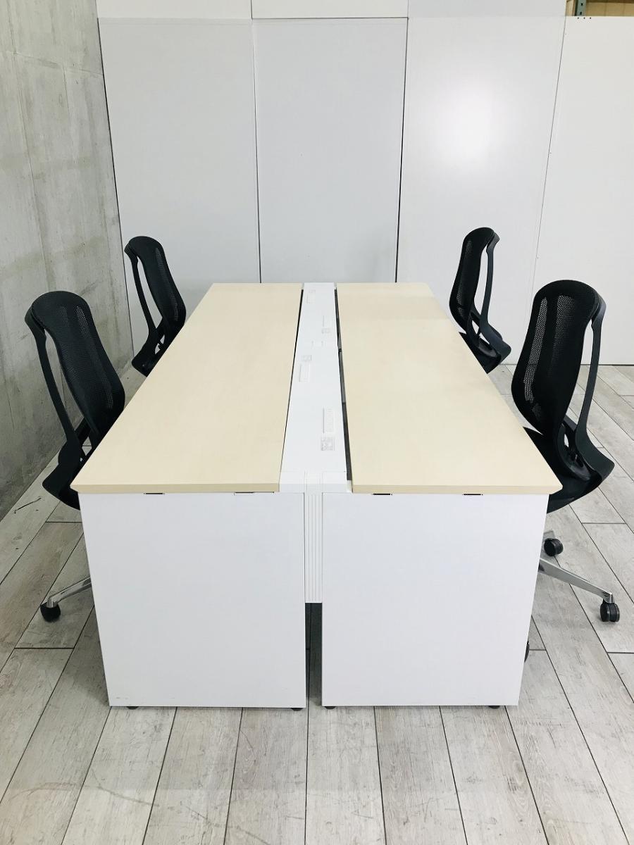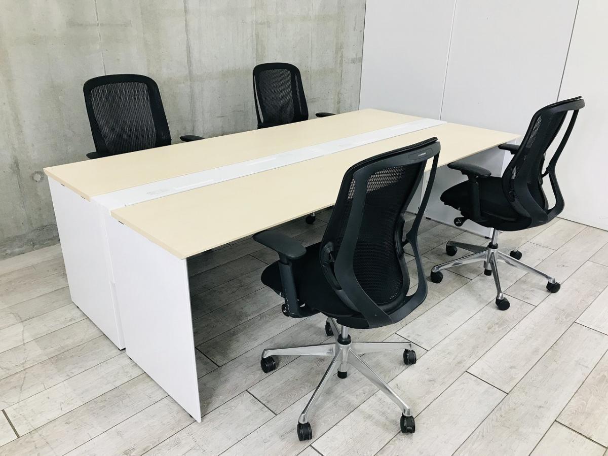 【関西倉庫入荷】■コクヨ(KOKUYO) ワークヴィスタ+(Workvista) ■W2400×D1400×H720㎜ ■ライトナチュラル×ホワイト脚 【4名での使用に最適な幅2400mm!】