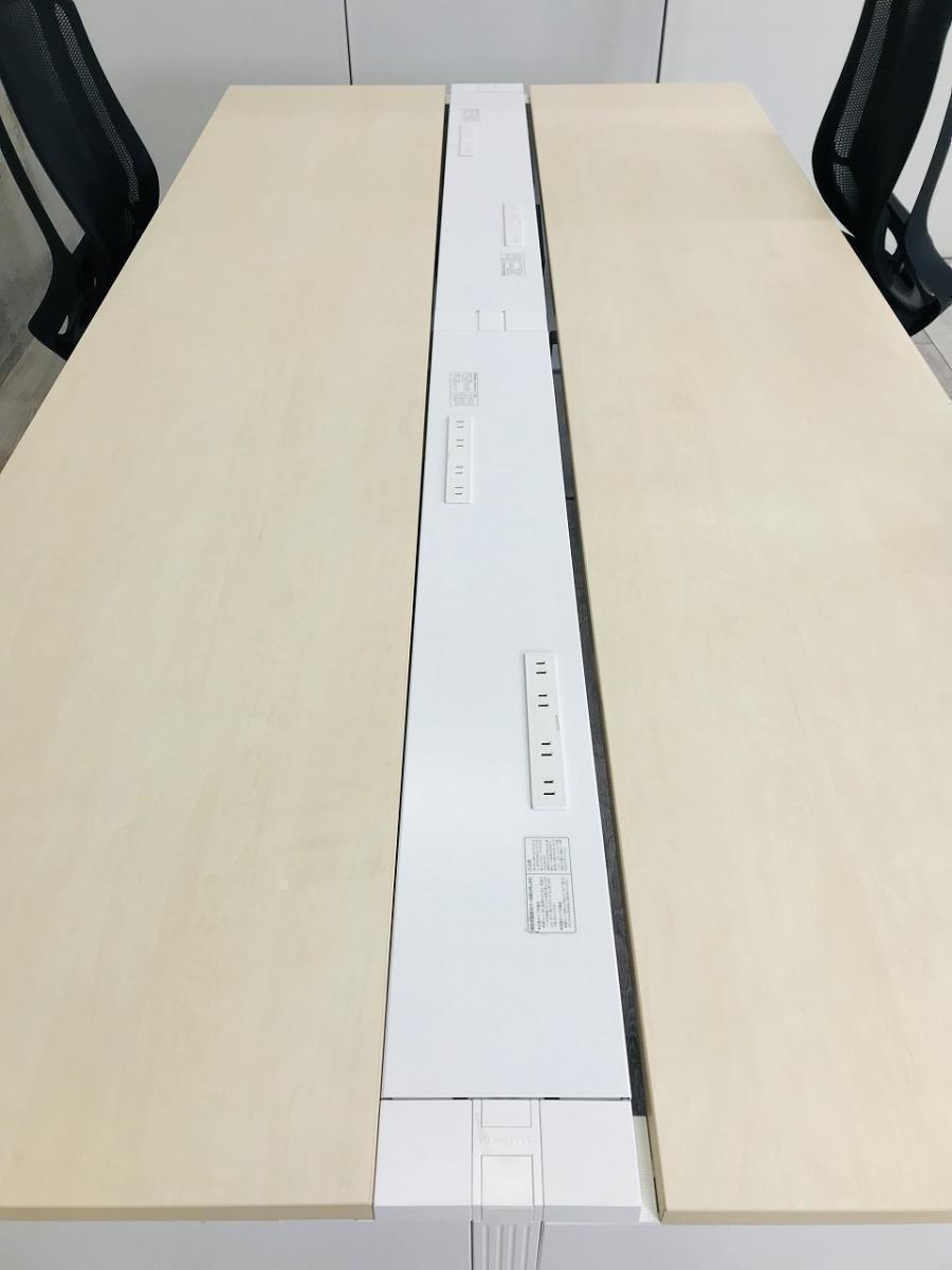 【4名での使用に最適な幅2400mm!】■コクヨ(KOKUYO) ワークヴィスタ+(Workvista) ■W2400×D1200×H720㎜ ■ライトナチュラル×ホワイト脚 ■固定式配線カバー 4口コンセント×4カ所 【関東倉庫在庫品】
