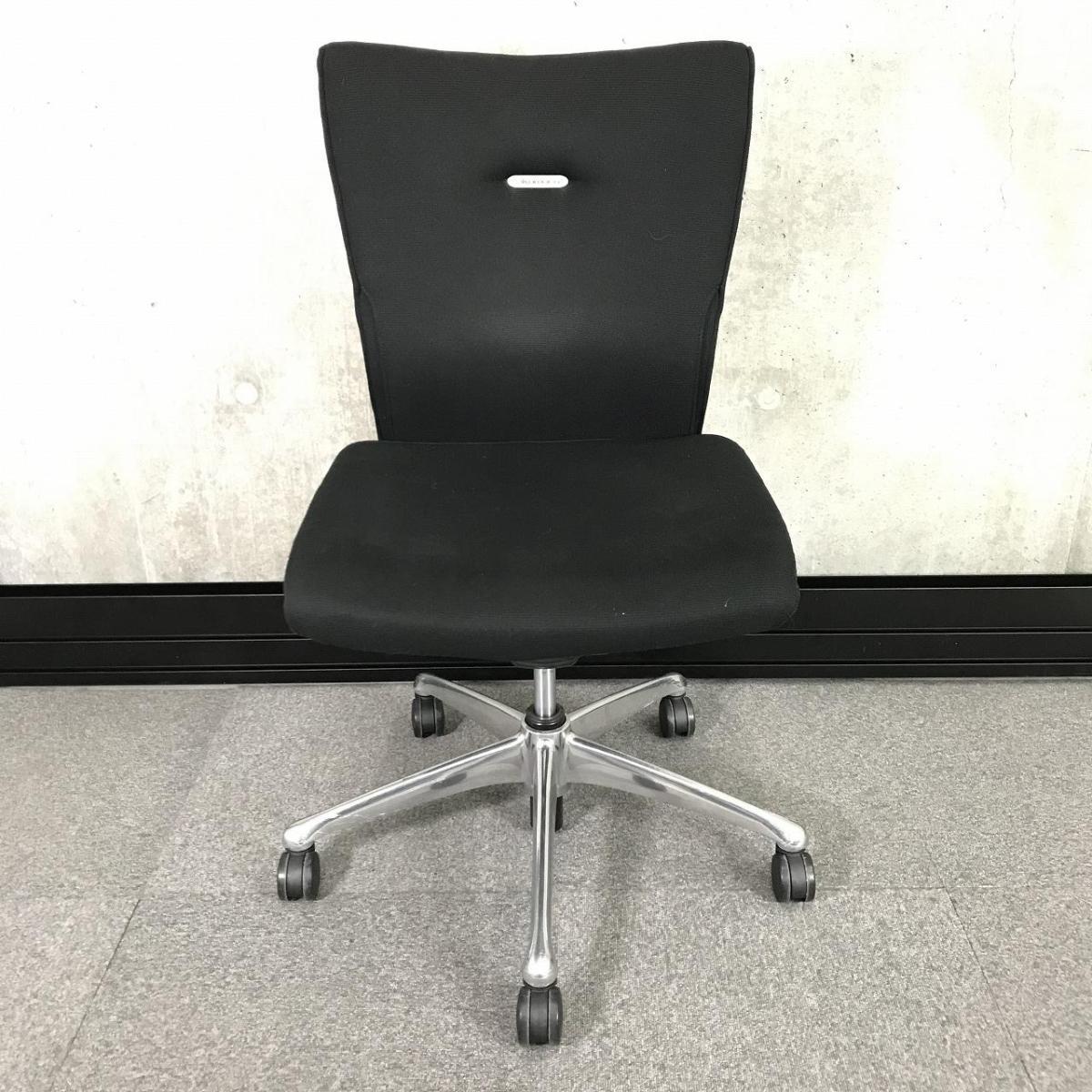 オカムラ フィーゴチェア 肘無しミドルバックモデル サイドファスナー ブラック ロングセラーシリーズ 定番カラーで使いやすいです- 名古屋千種店