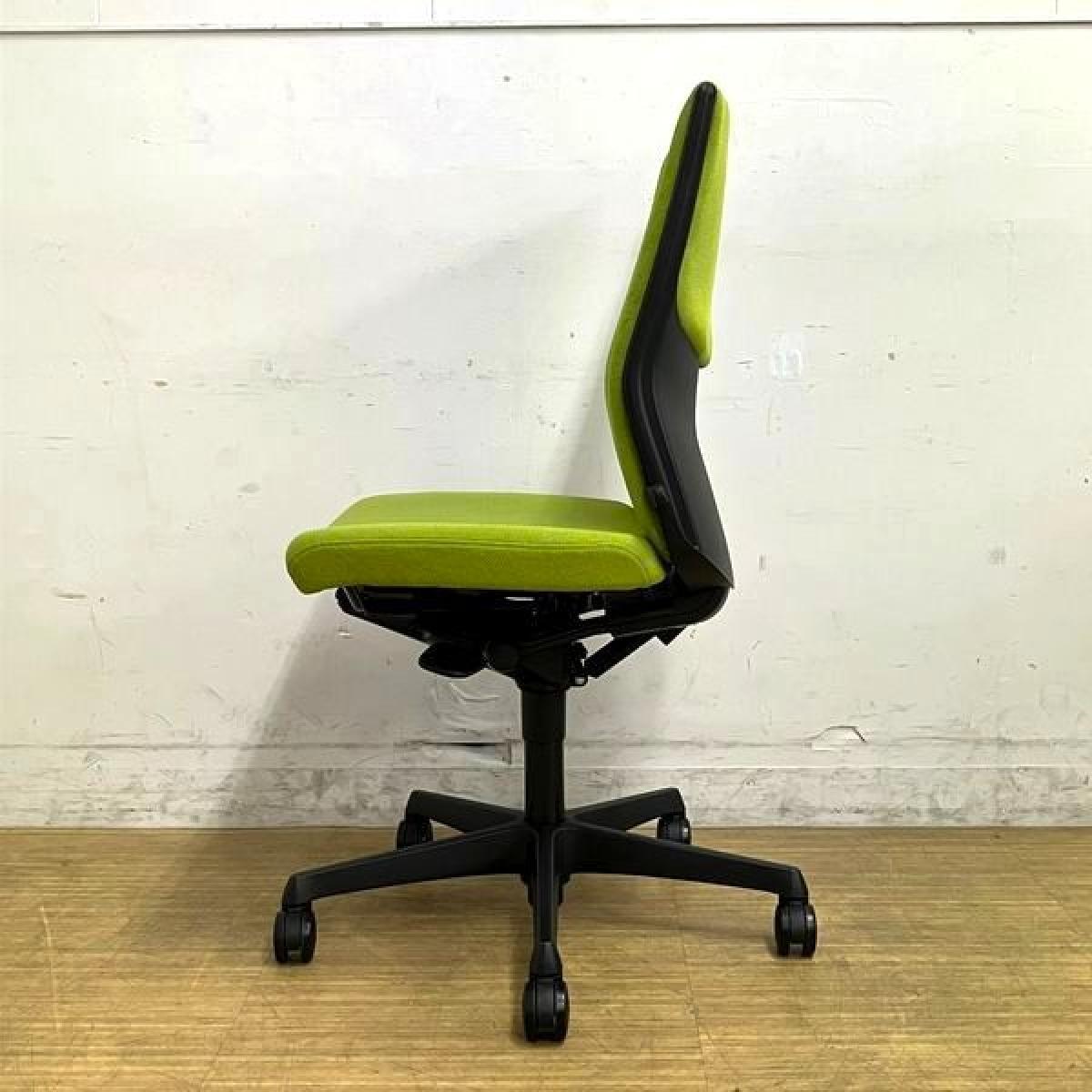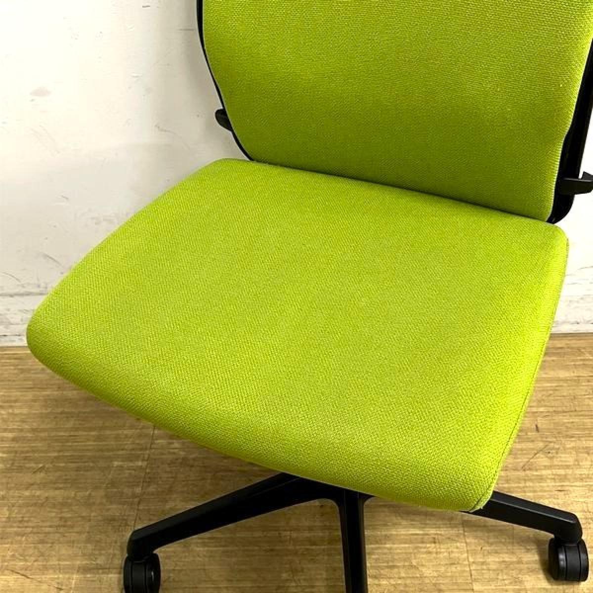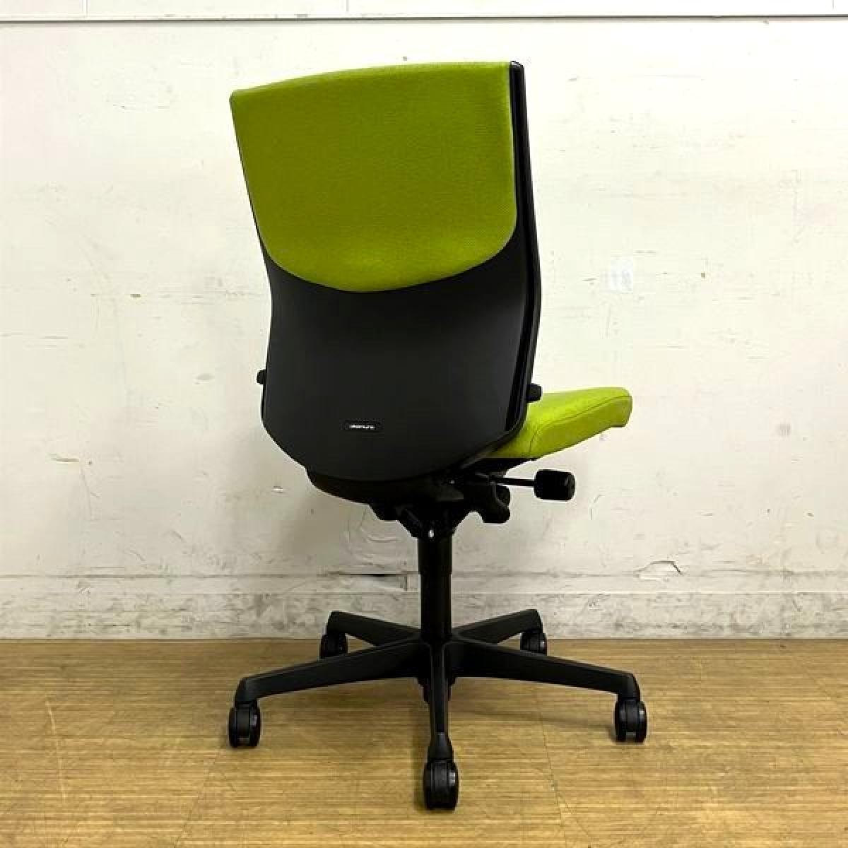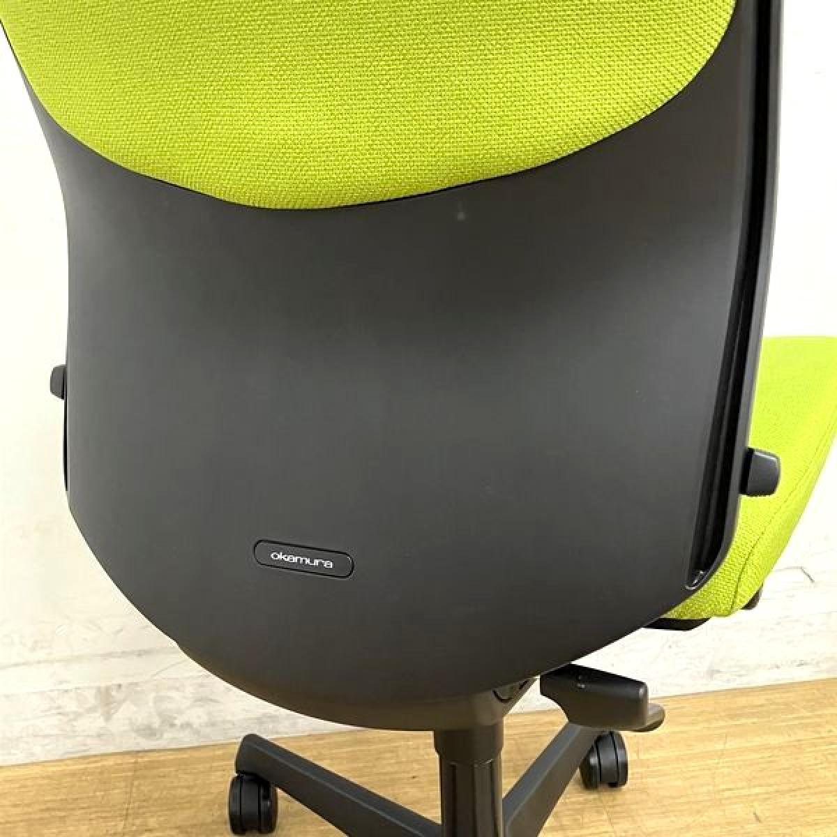 【在庫入替セール】オカムラ エスクード 肘無しハイバック クッションタイプ グリーン×ブラックフレーム ランバーサポート搭載- 名古屋千種店