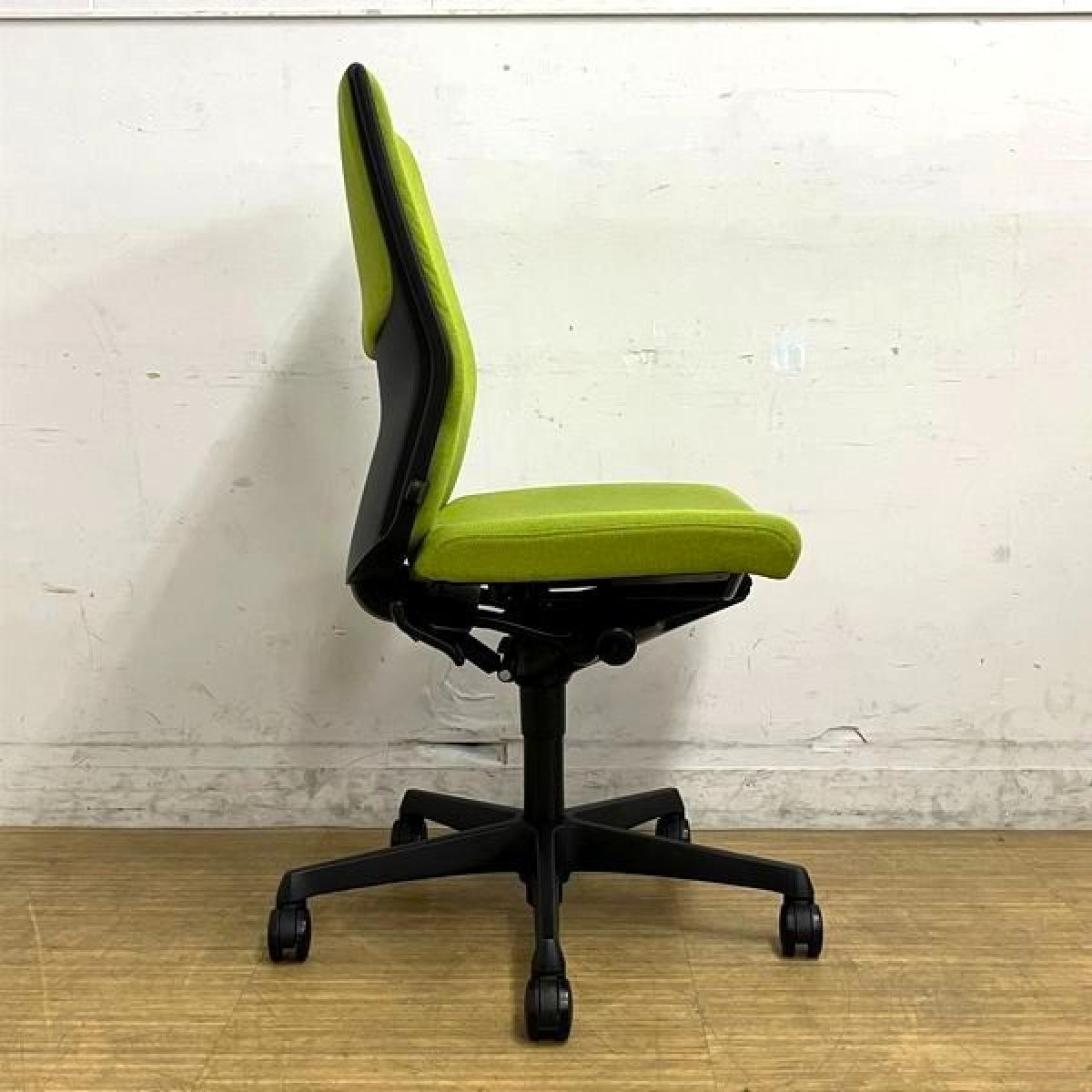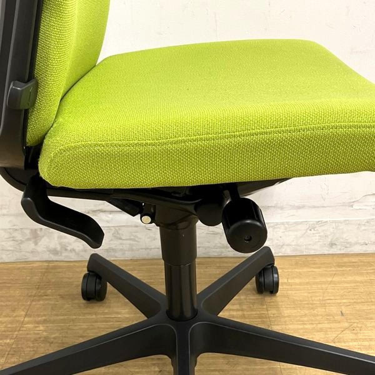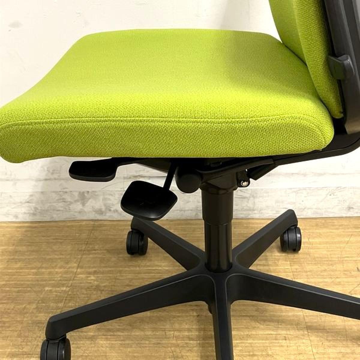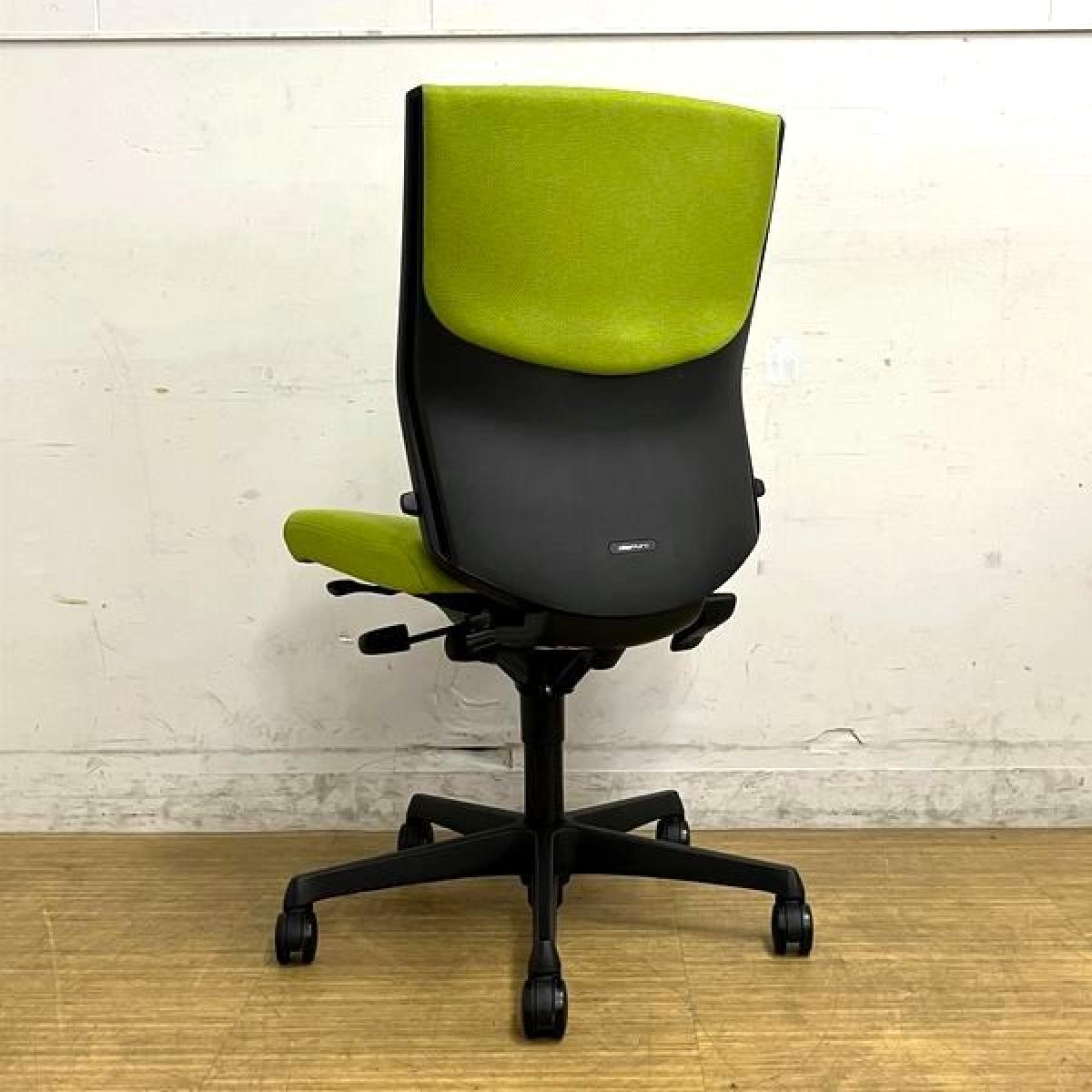 【在庫入替セール】オカムラ エスクード 肘無しハイバック クッションタイプ グリーン×ブラックフレーム ランバーサポート搭載- 名古屋千種店
