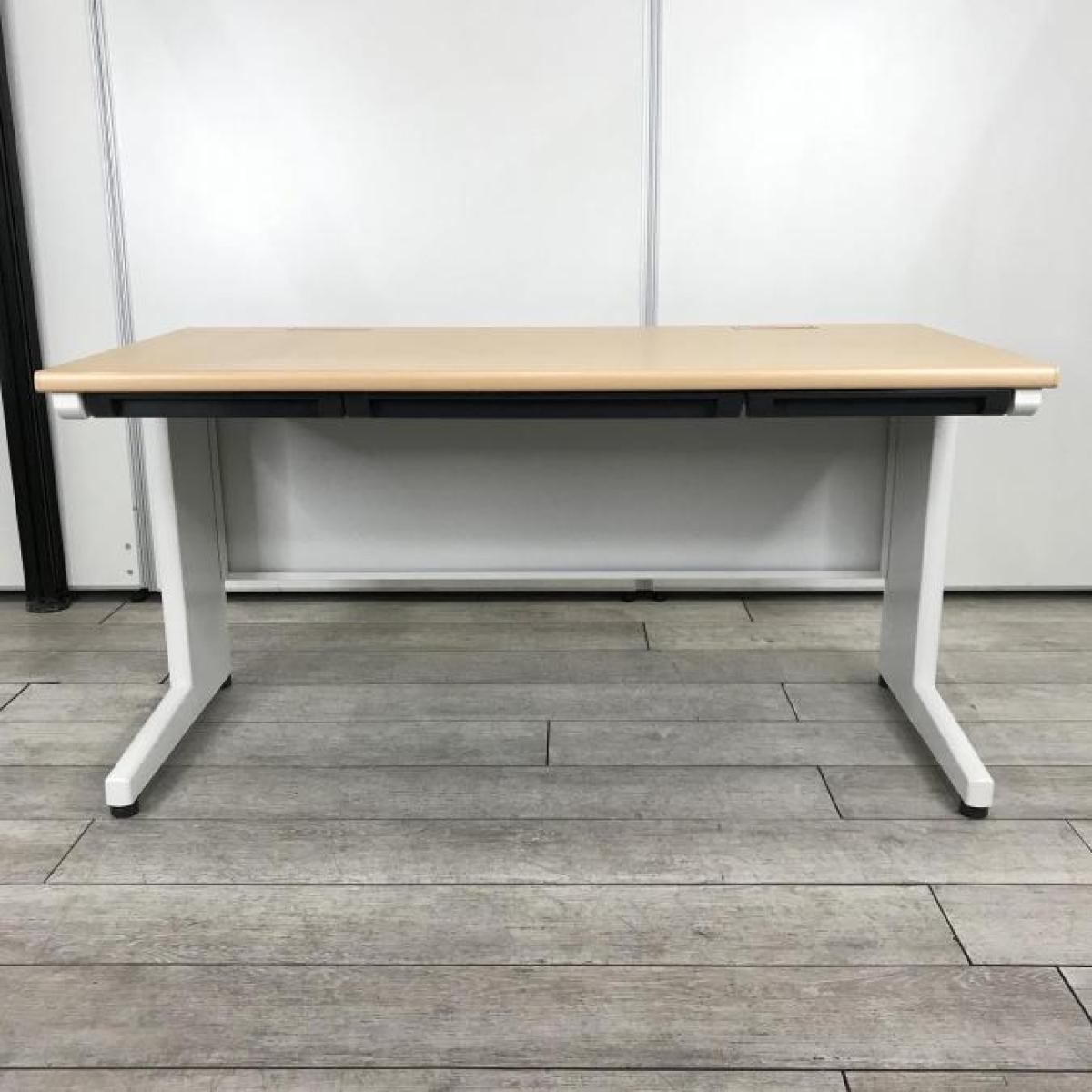 【在庫入れ替えSALE】【ゆとりのあるワークスペースで作業効率アップ!使いやすさを追究したデザイン!】■イトーキ(ITOKI)製 CZシリーズ 平デスク ■天板:木目ナチュラル/脚:L字ホワイト ■W1400×D700mm ■引出付〈岐阜・愛知・三重・静岡・福井〉