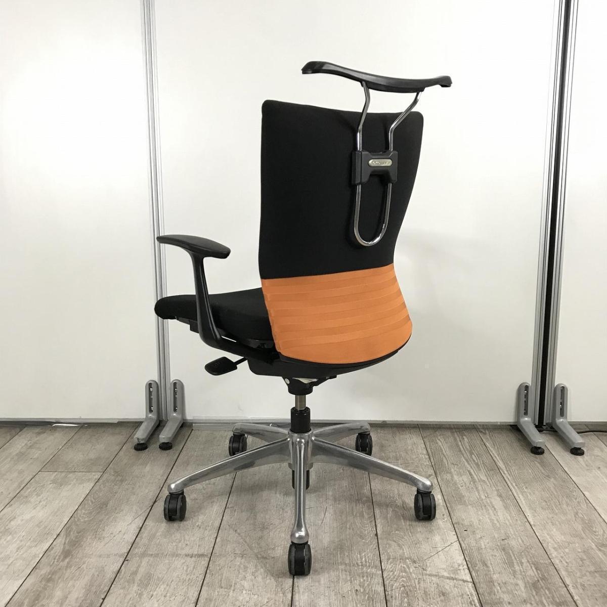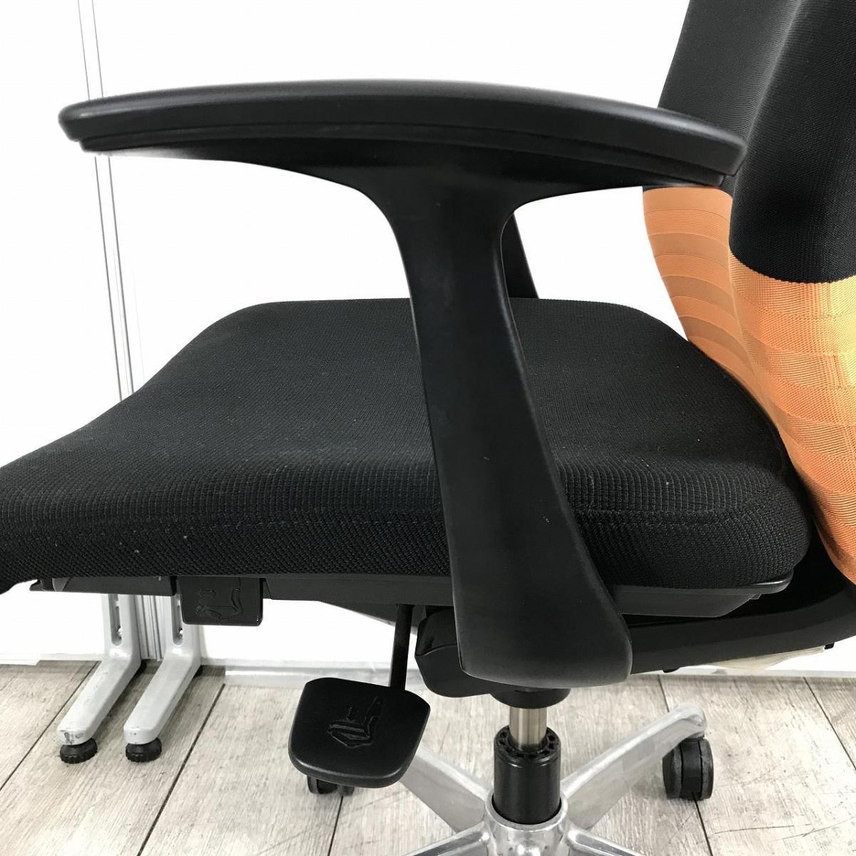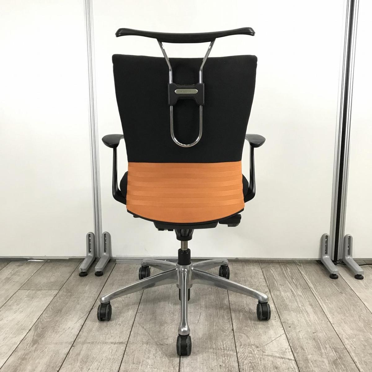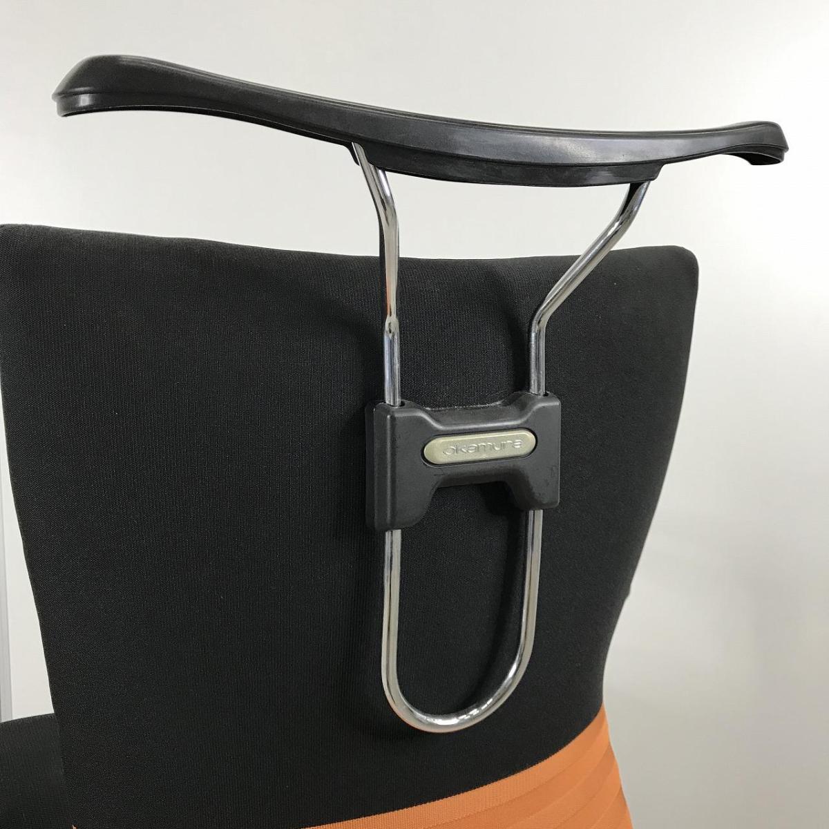 【人間工学に基づいた快適な座り心地!背あてのしなやかな曲線が背中にフィット!】■オカムラ(okamura)製 フィーゴ(feego)チェア 肘付きミドルバック シームレスタイプ ■固定肘/ハンガー付 ■オレンジ×ブラックサーキュラーバリューCO2削減量の算出について