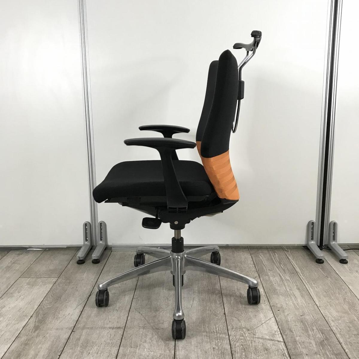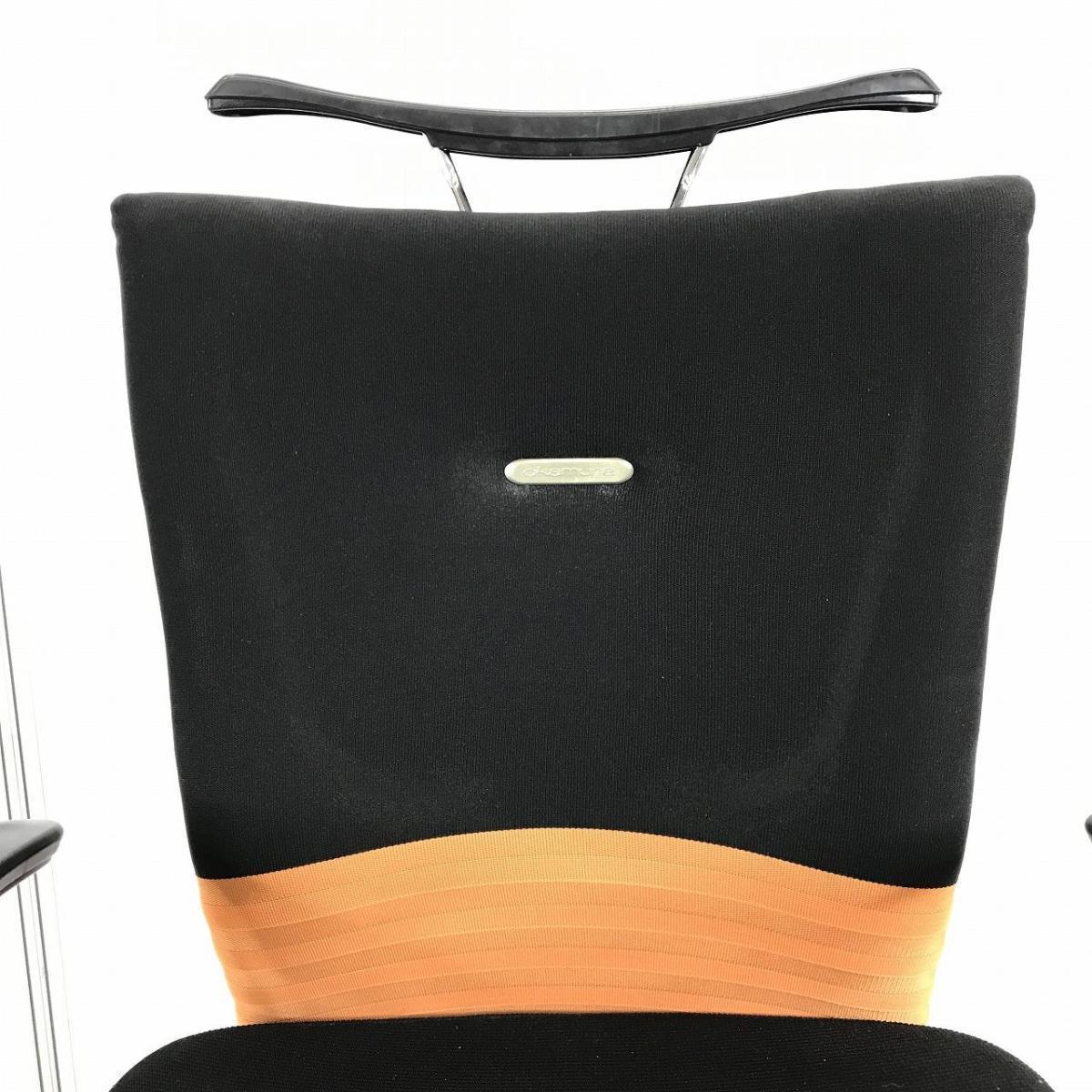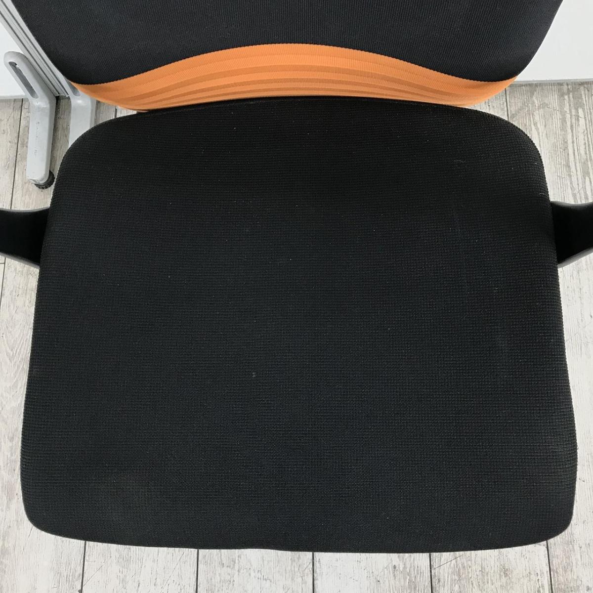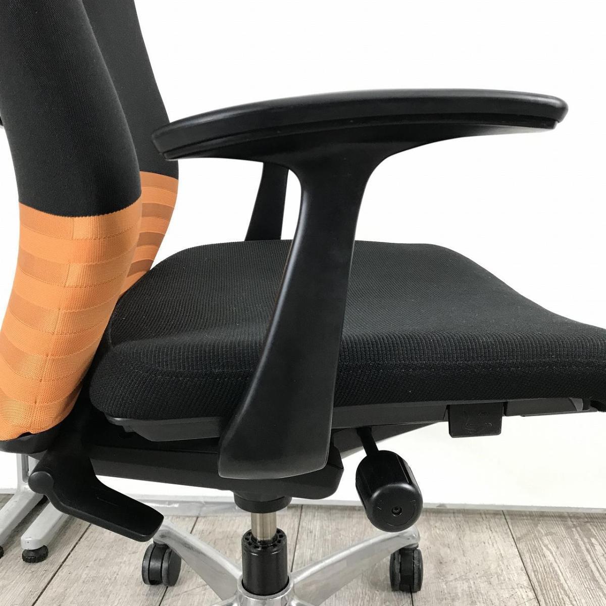 【人間工学に基づいた快適な座り心地!背あてのしなやかな曲線が背中にフィット!】■オカムラ(okamura)製 フィーゴ(feego)チェア 肘付きミドルバック シームレスタイプ ■固定肘/ハンガー付 ■オレンジ×ブラックサーキュラーバリューCO2削減量の算出について