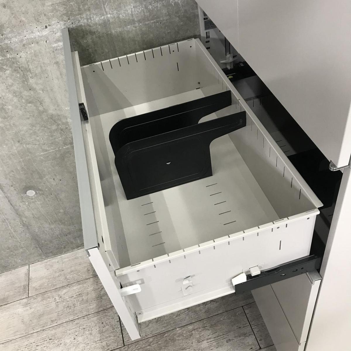 - 一部不具合ありそ引出の開閉不可、施錠不可、棚板無しといったの書庫の本来の効用を果たすための機能以外の一部が使用不可(例、扉、引出の開閉がしづらいなどがある。 )