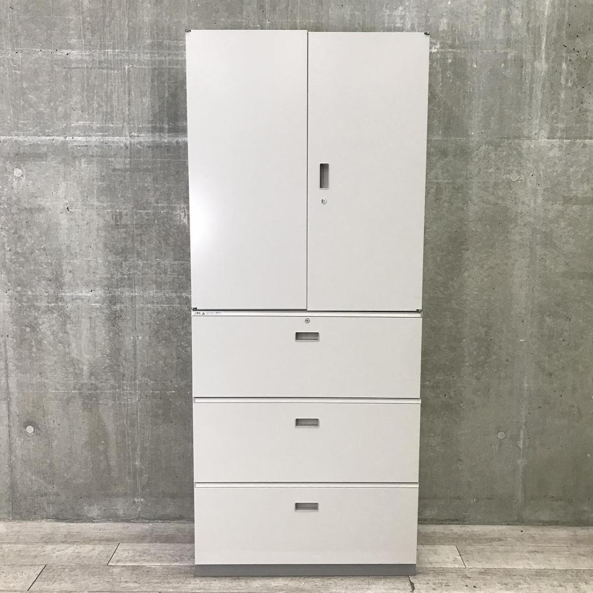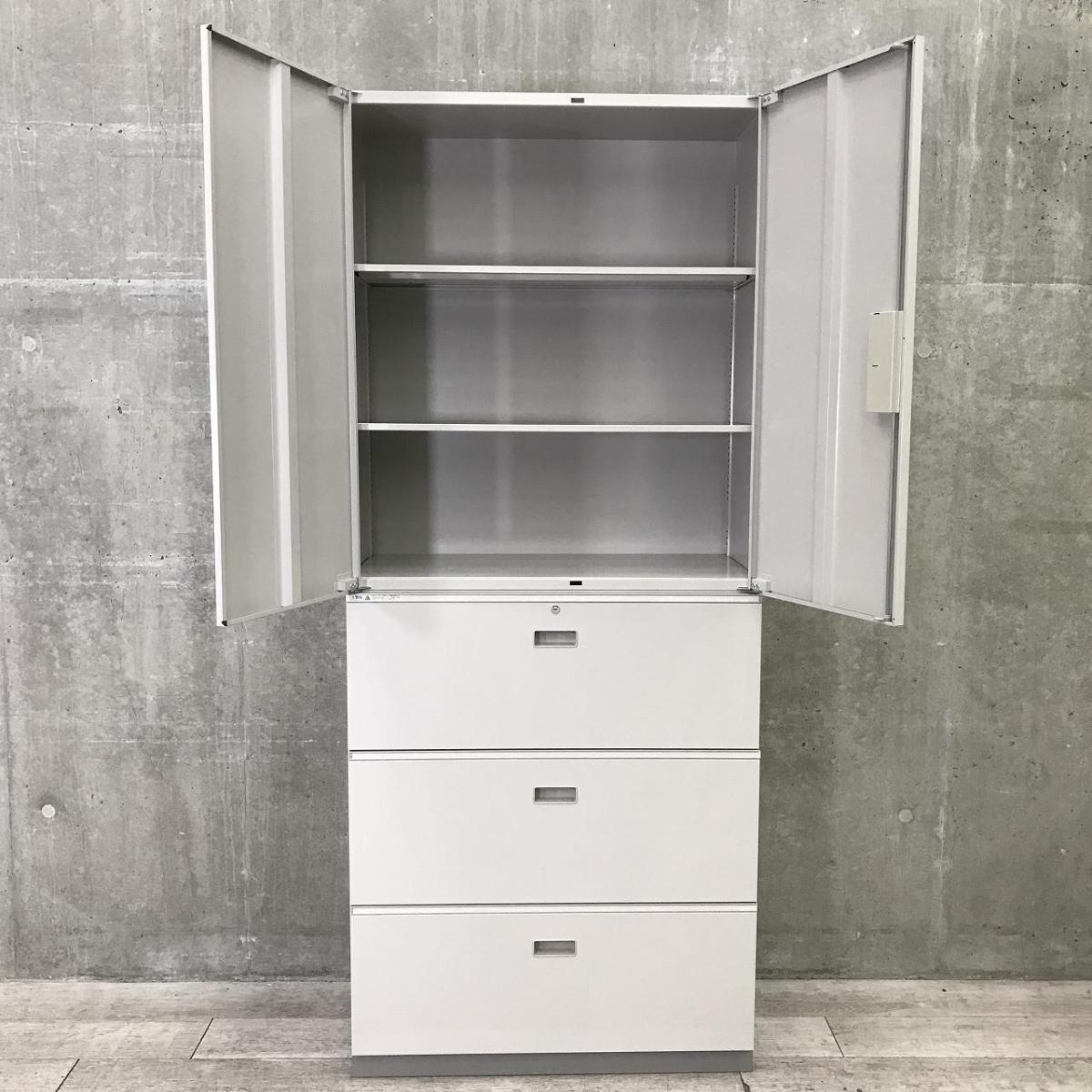 【関西倉庫在庫品・ロット入荷】■イトーキ (ITOKI)製 シンライン ハイキャビネット 両開き+3段ラテラル 書庫セット ■グレー ■シリンダー錠【これ1台で書類整理の問題が解決!上下で6段分の大容量収納!】