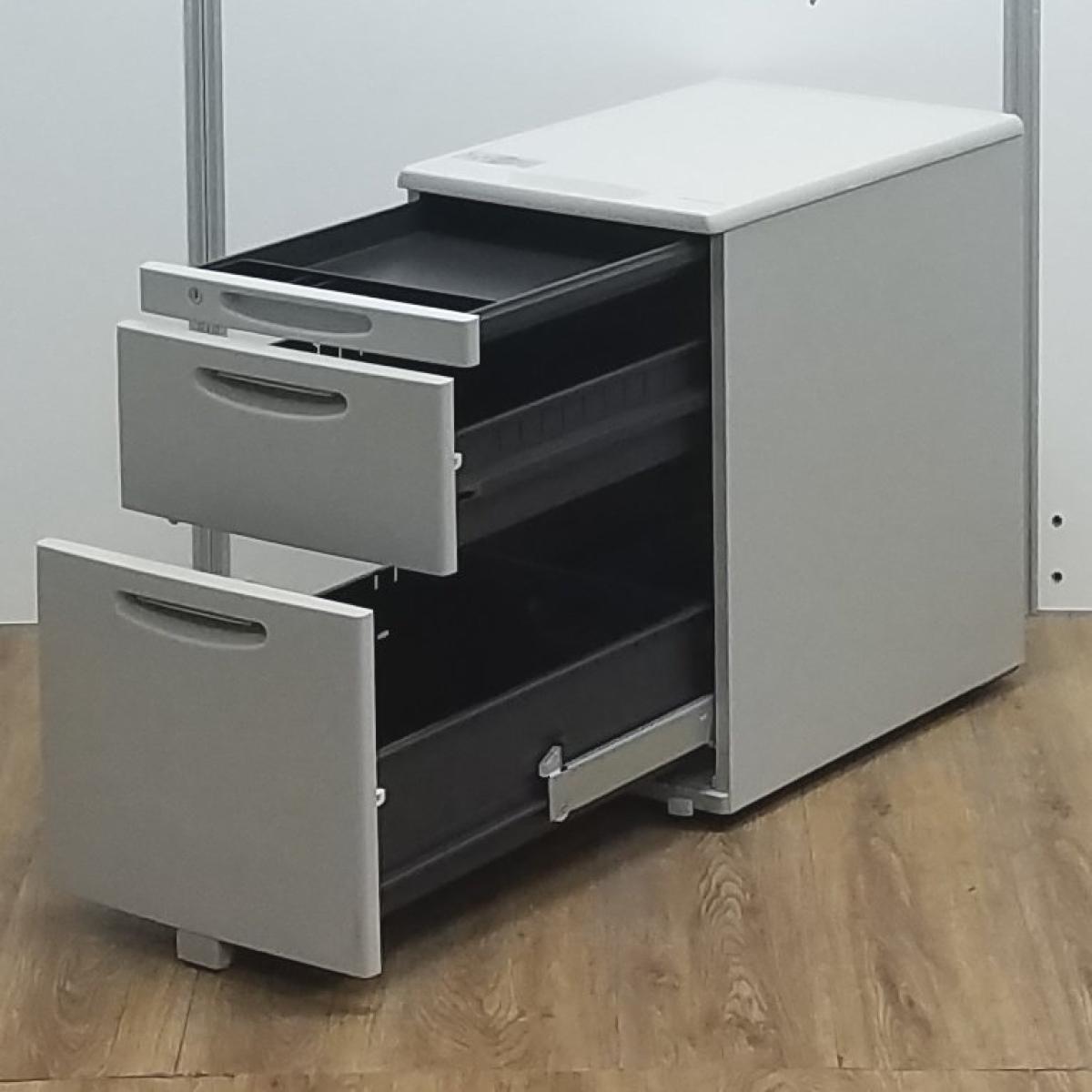 ■オカムラ(okamura)製 SDシリーズ 3段ワゴン デスクインワゴン H610mm ■ライトグレー ■シリンダー錠 【弊社使用欄:A01032360】