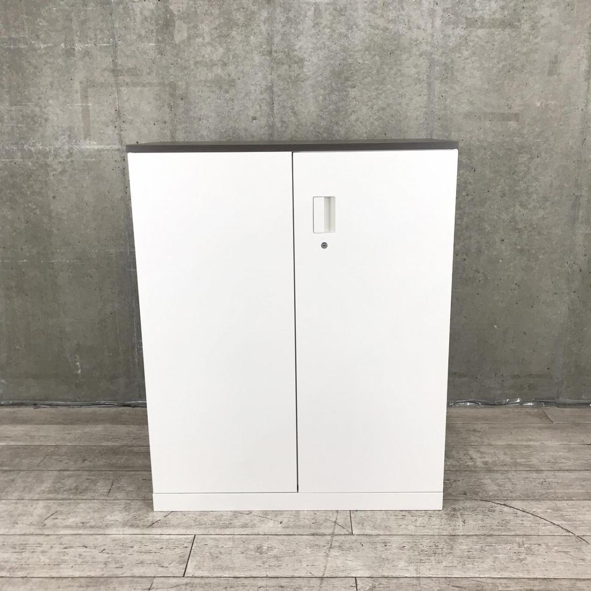 【書類の収納スペースを増やしたい方に!収納力抜群な観音開きタイプのキャビネット】■イトーキ製 (ITOKI)製 エスキャビネット(eS) 両開き ローキャビネット H1120㎜ ■ホワイト/天板:木目ブラウン ■シリンダー錠 【フラットで美しい!】- 茨城南店
