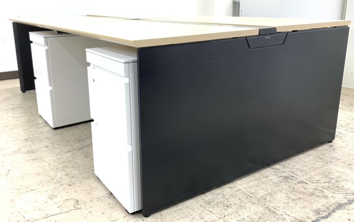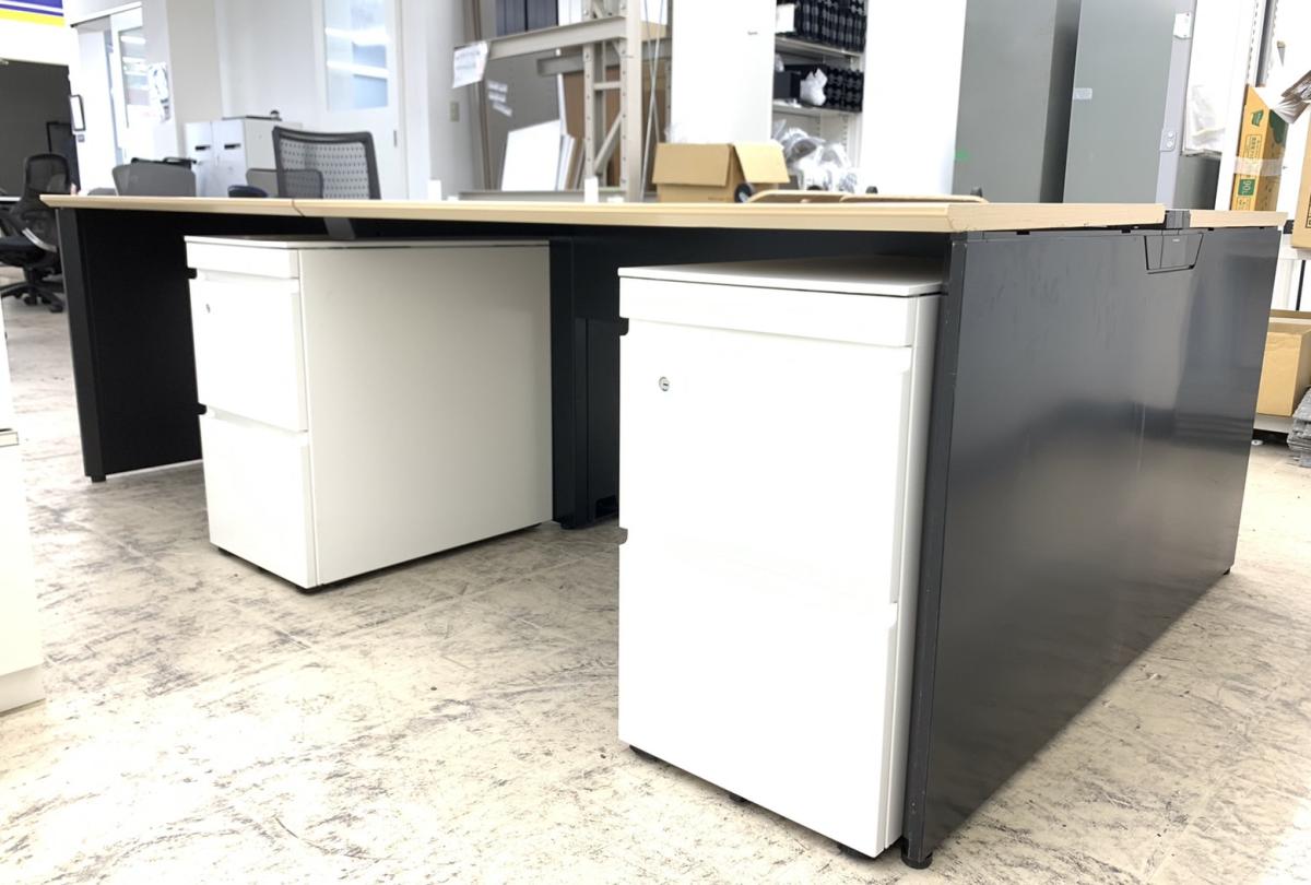 【コミュニケーション活性化や業務効率化、採用率UPにも繋がる! フリーアドレスデスク+フリアド用ワゴン×4台セット!】■オカムラ製 フリーウェイ フリーアドレスデスク ■ナチュラル×ブラック ■W2400 ※ワゴンは在庫状況によってシリーズが変動致します。在庫がある店舗一覧