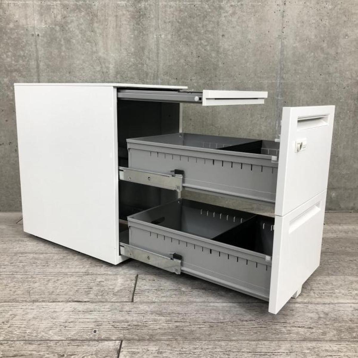 入替セール品につきお値下げ!【平机・フリーアドレスデスクにおすすめ!ダイヤル錠で鍵を持ち歩く手間なし!】■ウチダ(UCHIDA) STワゴン 3段ワゴン フリアド用ワゴン H650㎜ ■ホワイト ■ダイヤル錠- 品川・三田店