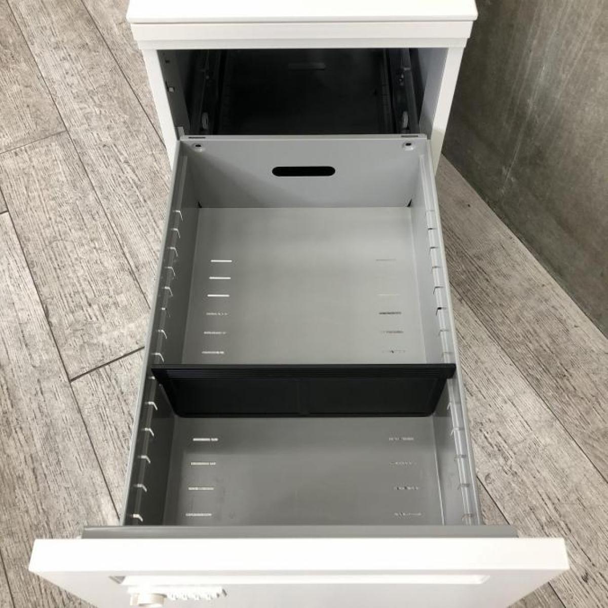 【T12】【商品入替のため、残り4台限り】ウチダ製 ST ホワイト 3段 ワゴン フリアド用 W395×D585xH650サイズ シリンダー錠 デスク下に置いて収納アップ! 使い勝手抜群のキャスター付き フリーアドレスデスク用3段ワゴン!!