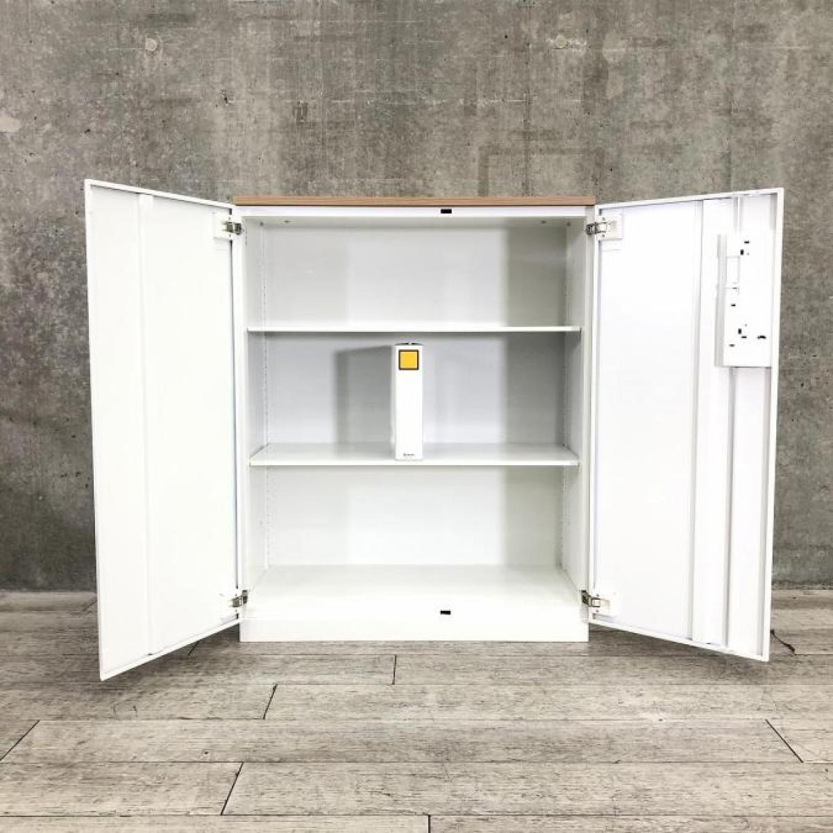 【収納量抜群!観音開きタイプのキャビネット!】■コクヨ(KOKUYO)製 エディアシリーズ(EDIA) 両開き書庫 ローキャビネット 下置き用 ■ナチュラル木目天板 ■ホワイト ■シリンダー錠 【弊社使用欄:A90100726】サーキュラーバリューCO2削減量の算出について
