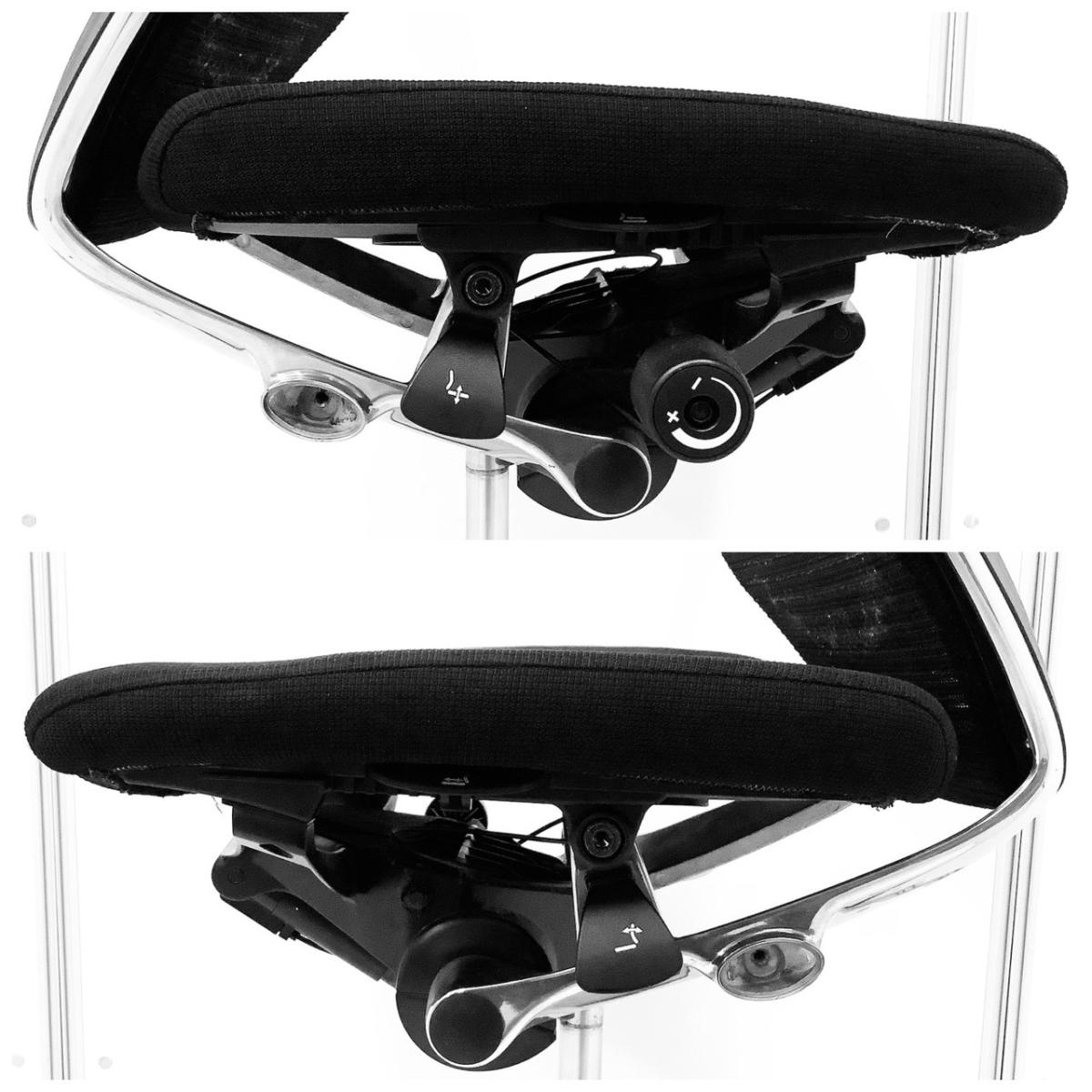 もちろん座り心地もコンテッサの直系ですから快適です。座面の素材はクッションとメッシュの2タイプあります。私、個人的には座面の中心部分でも外側でもテンションが変わらないクッション素材が、足を閉じても開いても快適なので推しです!"