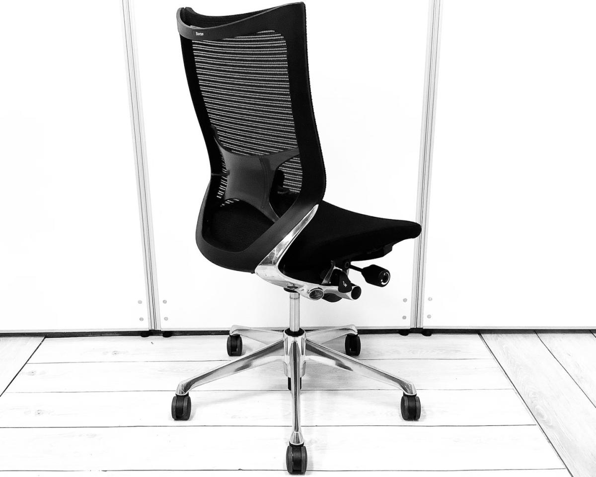 【長時間の着座でも疲れにくいサポート感! ベストなポジションが得られる先進設計!】■オカムラ(okamura)製 バロンチェア(Baron) 肘無ハイバック 背面メッシュ ■ブラック
