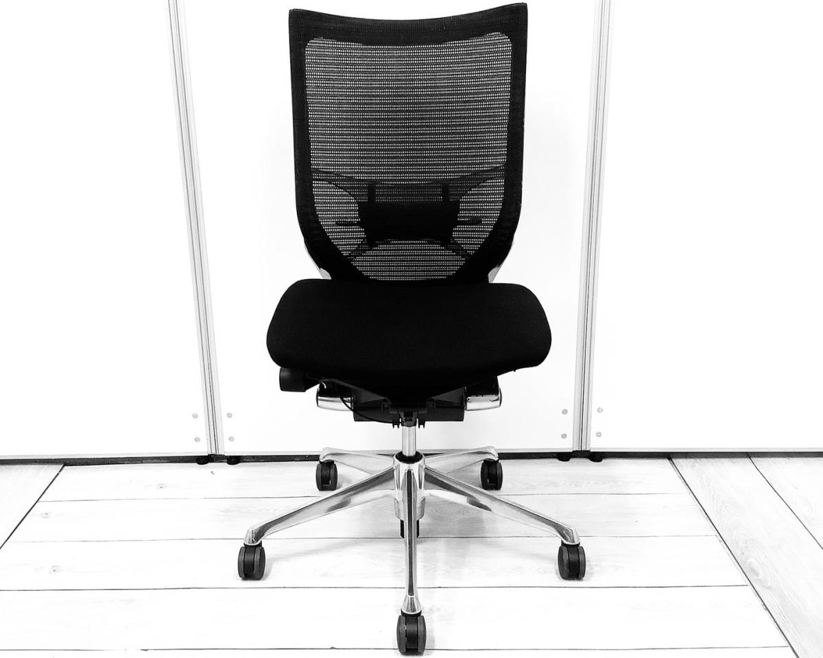 ■Okamura/オカムラ ■バロン ■ブラック(black)■ハンガー付き ■背面/メッシュ ■ポリッシュ脚 ■肘無し ■ハイバック ■オススメ/大人気/定番商品 【弊社使用欄:A01030651】