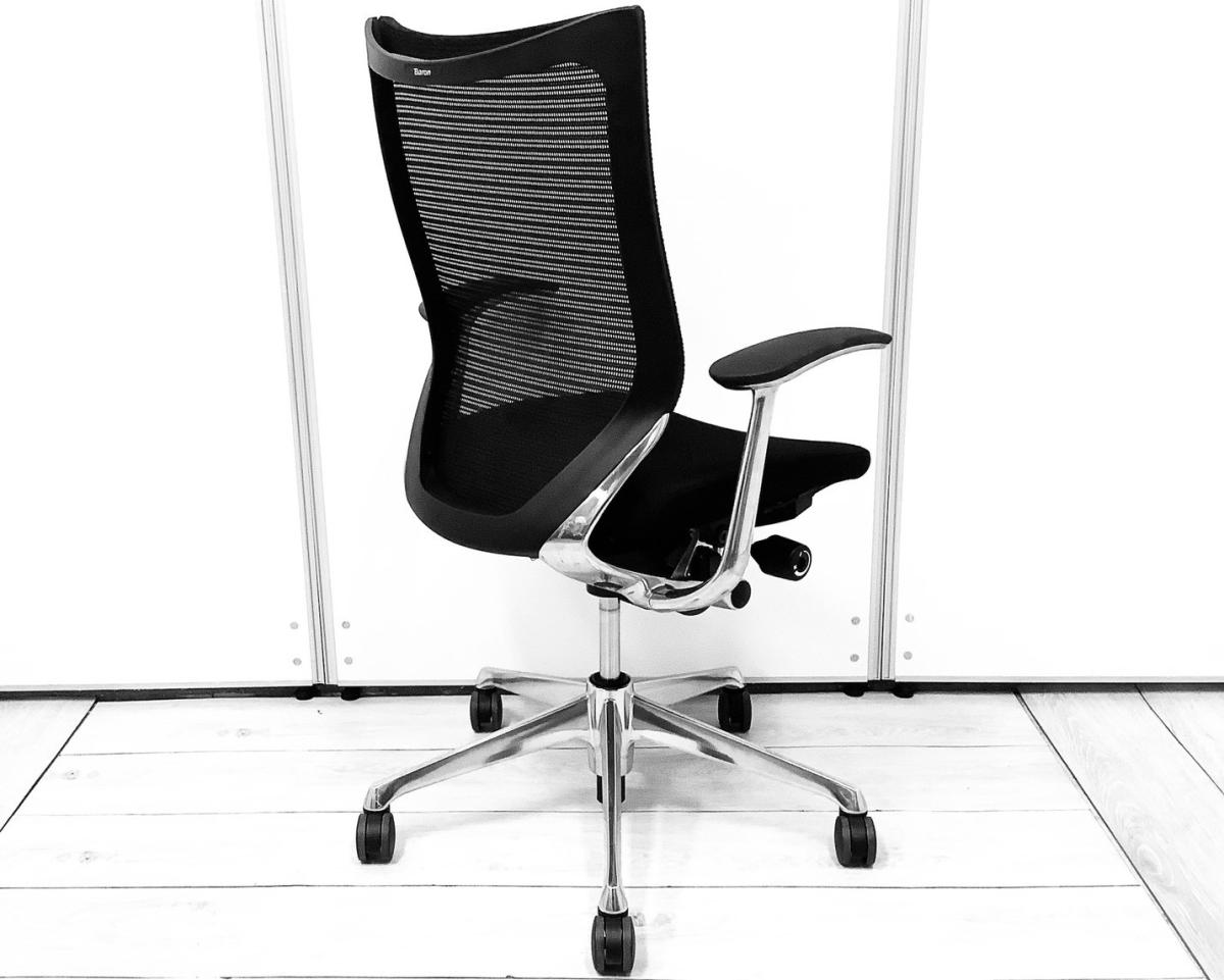 【硬めの座面が大人気!国産メッシュチェアの代表格!オフィスの執務室、会議室におすすめ!】■オカムラ(okamura)製 バロン(Baron)チェア 肘付き ハイバック 背面メッシュ ■固定肘 ■色:ブラック