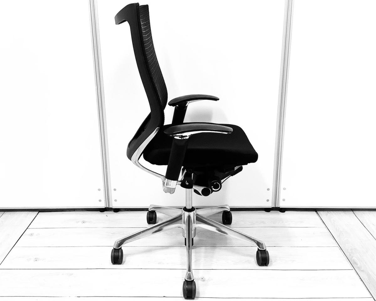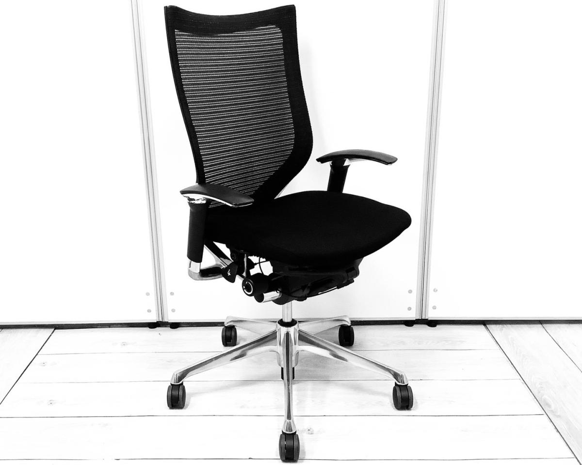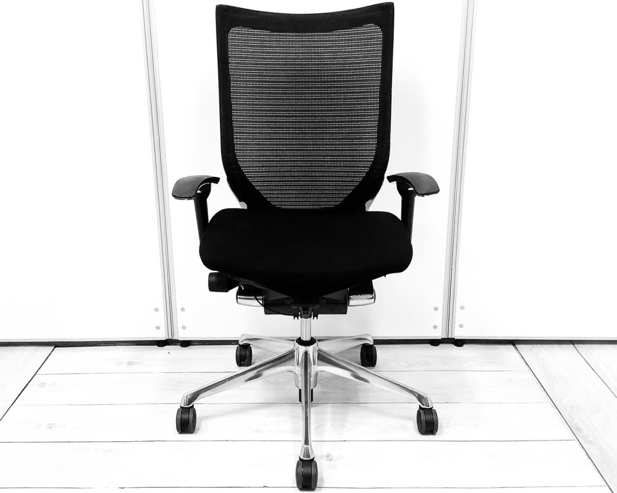 【肘付(固定肘)/クッション座面/ランバーサポート有】スタンダードメッシュ 高級感のある会議室 ブラックボディ アームレスト付 デザインアーム 固定肘 オススメ(おすすめ) 大人気 ・Okamura/オカムラ ・Baron/バロン ※横浜本店撮影画像※