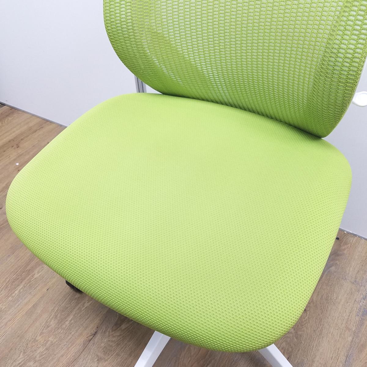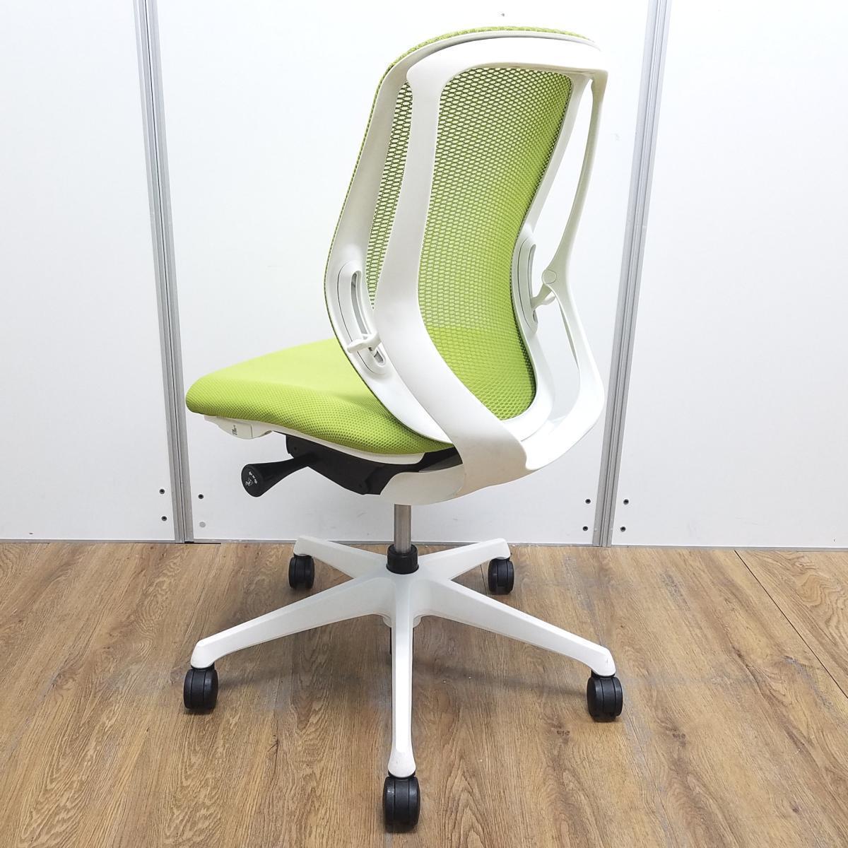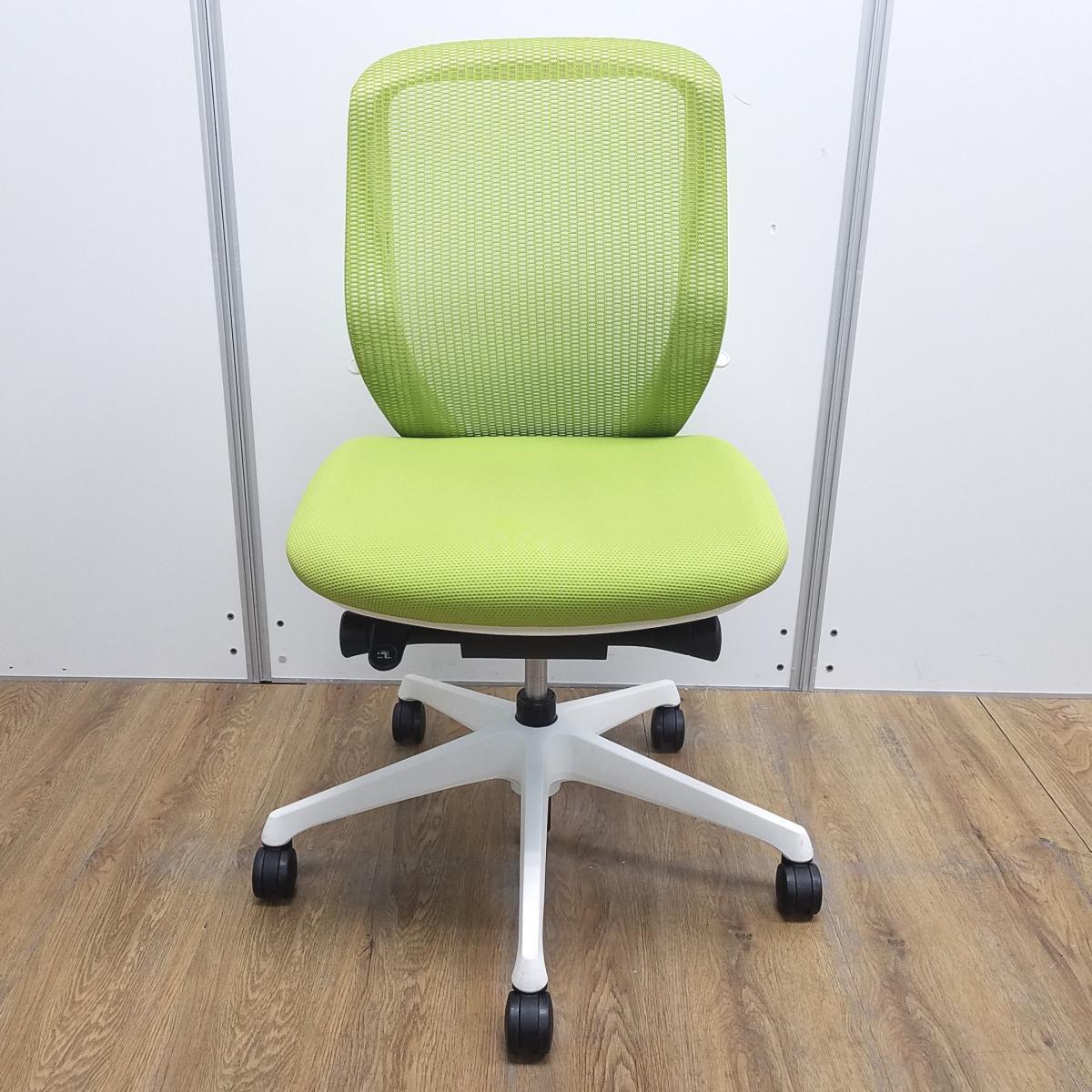 【在庫入替セール】オカムラ製 シルフィシリーズ ライムグリーン ホワイトフレーム ローバック 肘無し 背面メッシュ 前傾チルト 自宅用 三次元曲面が快適にフィット! 機能付の大人気メッシュチェア! 肘無しローバックチェア!!【T1】- 大阪心斎橋店