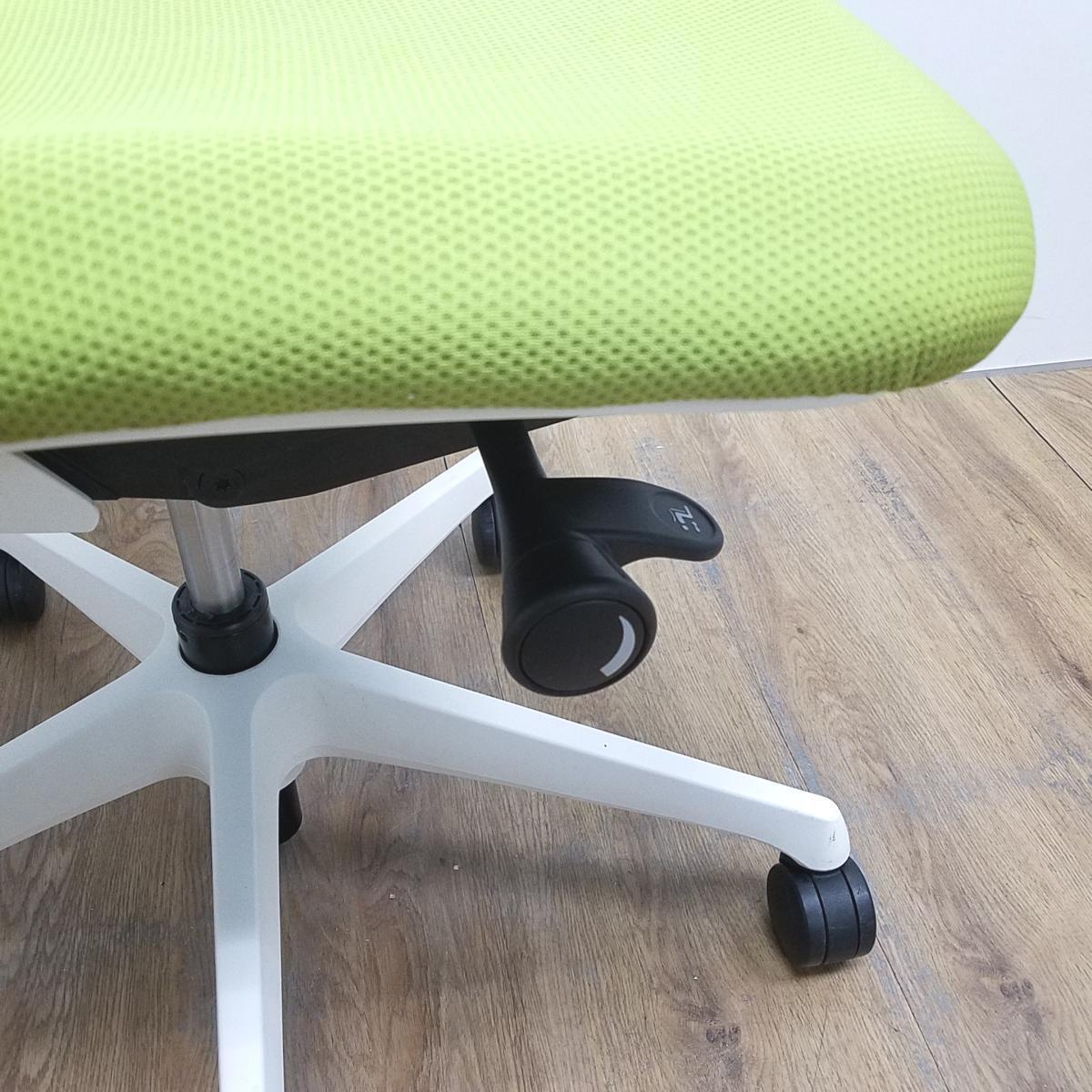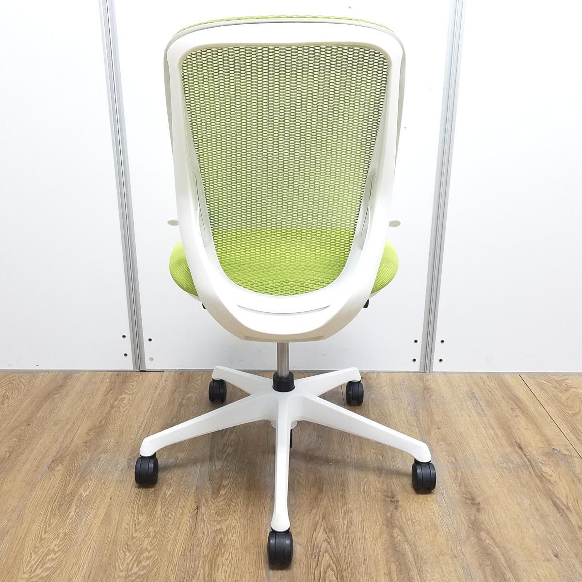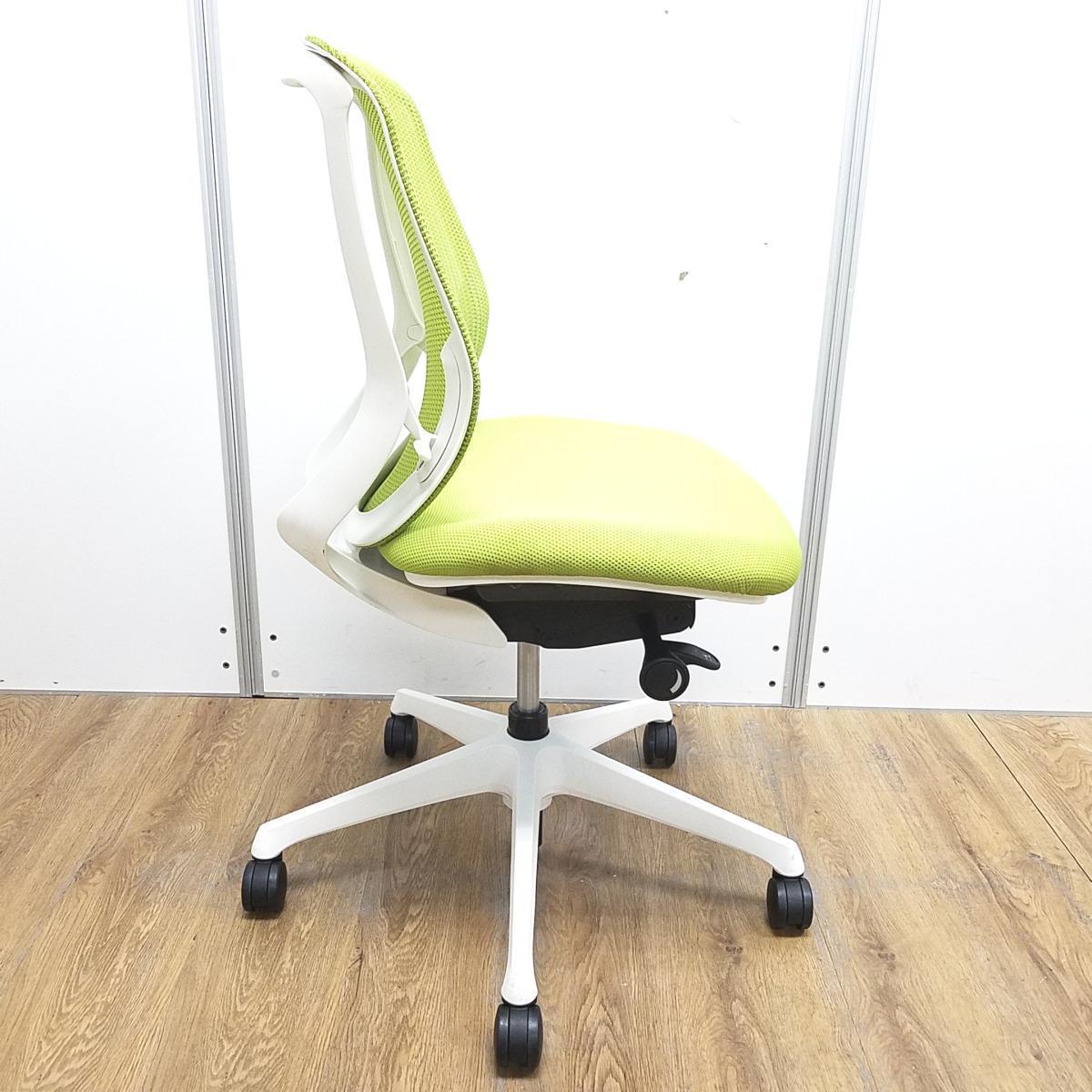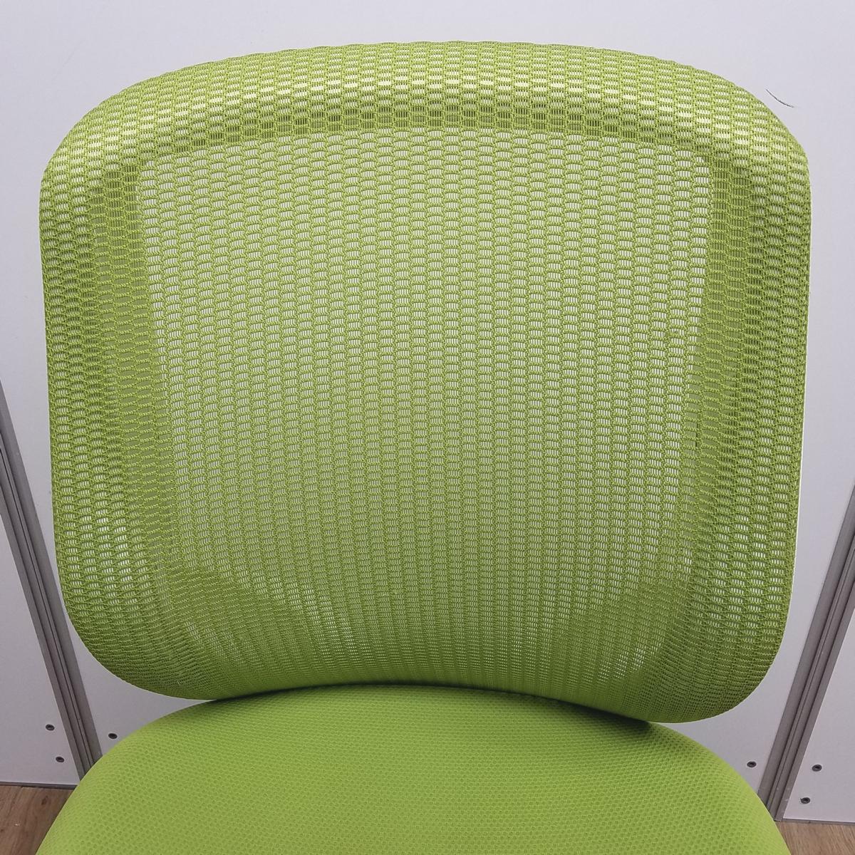 【在庫入替セール】オカムラ製 シルフィシリーズ ライムグリーン ホワイトフレーム ローバック 肘無し 背面メッシュ 前傾チルト 自宅用 三次元曲面が快適にフィット! 機能付の大人気メッシュチェア! 肘無しローバックチェア!!【T1】- 大阪心斎橋店