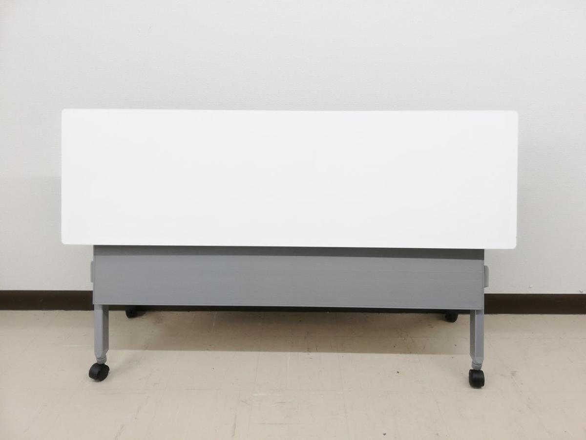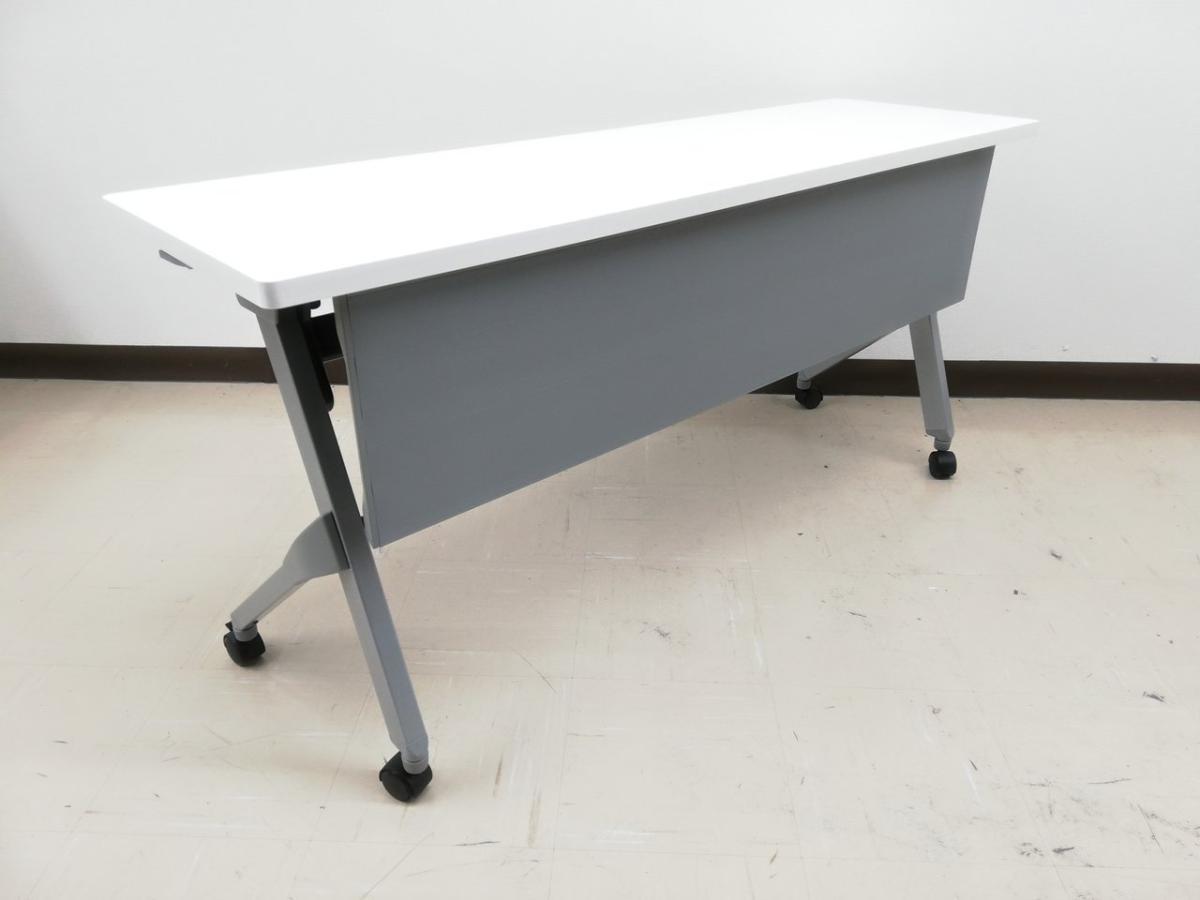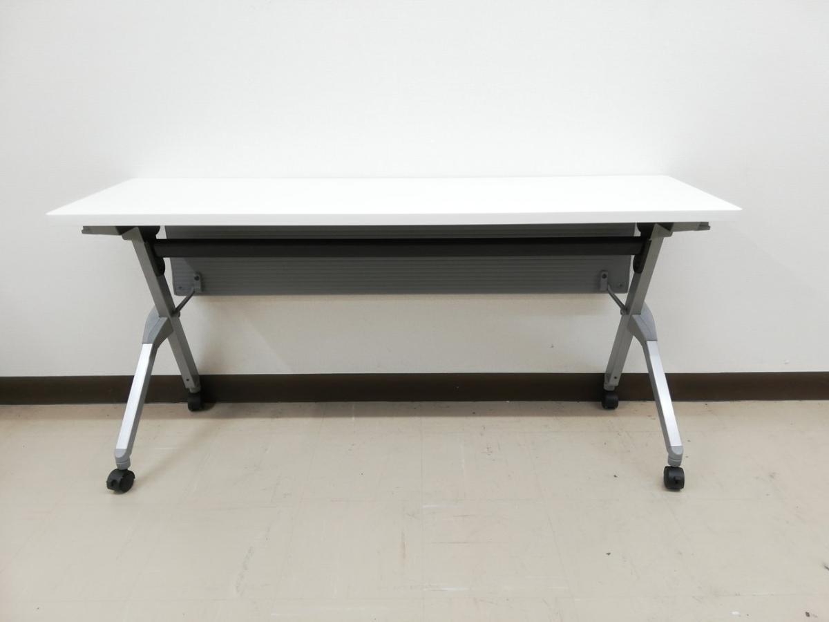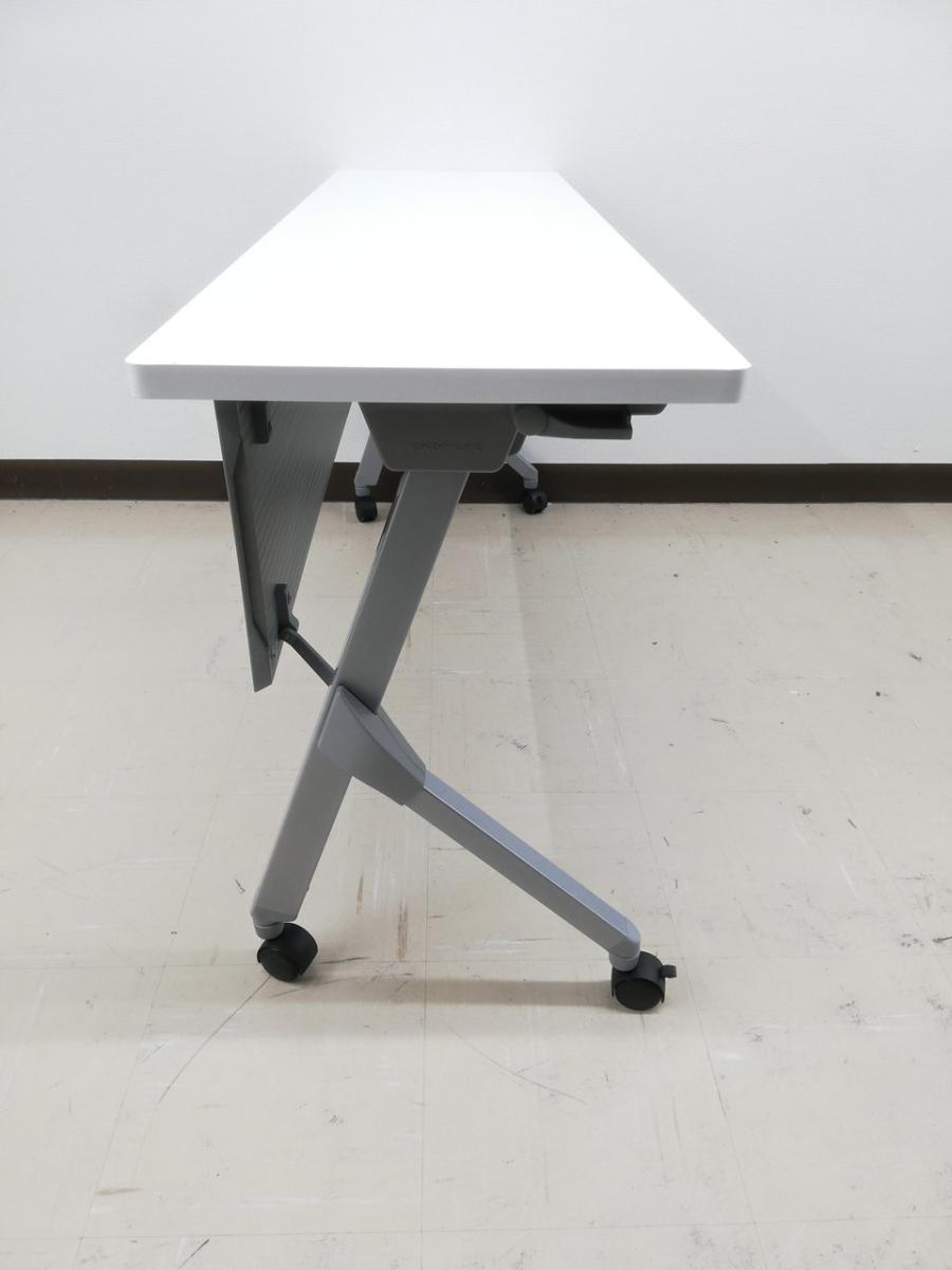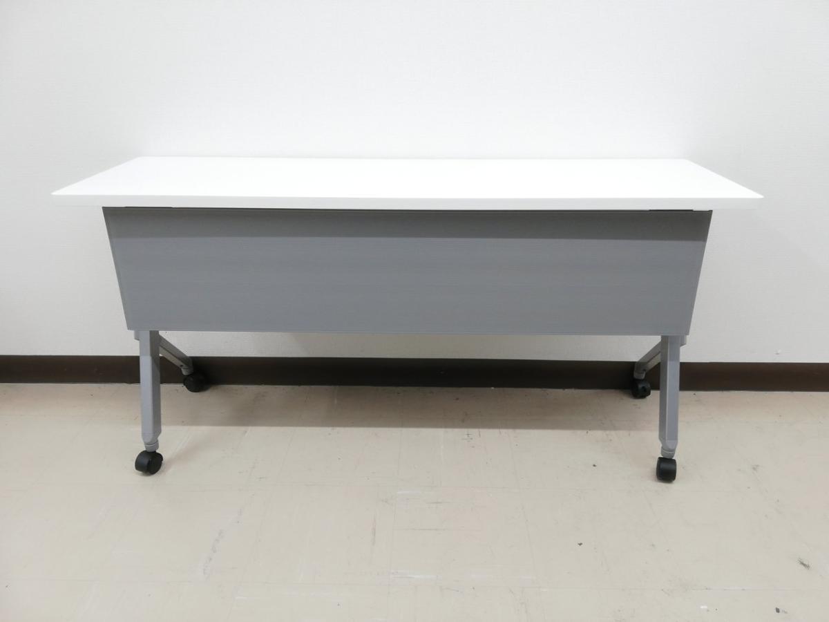 ☆W1500×D450mm!【スタイリッシュなデザイン!】■オカムラ 平行スタックテーブル ホワイト 幕板付き ■フレキシブルにご利用頂ける!折りたたみテーブル!【Okamura FLAPTOR】