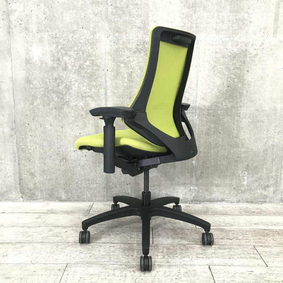 【高機能で座り心地も抜群!姿勢の変化にフレキシブルに対応】■イトーキ製 エフチェア ハイバック肘付き ■可動肘 背面メッシュ ■アイビーグリーン × ブラックフレーム