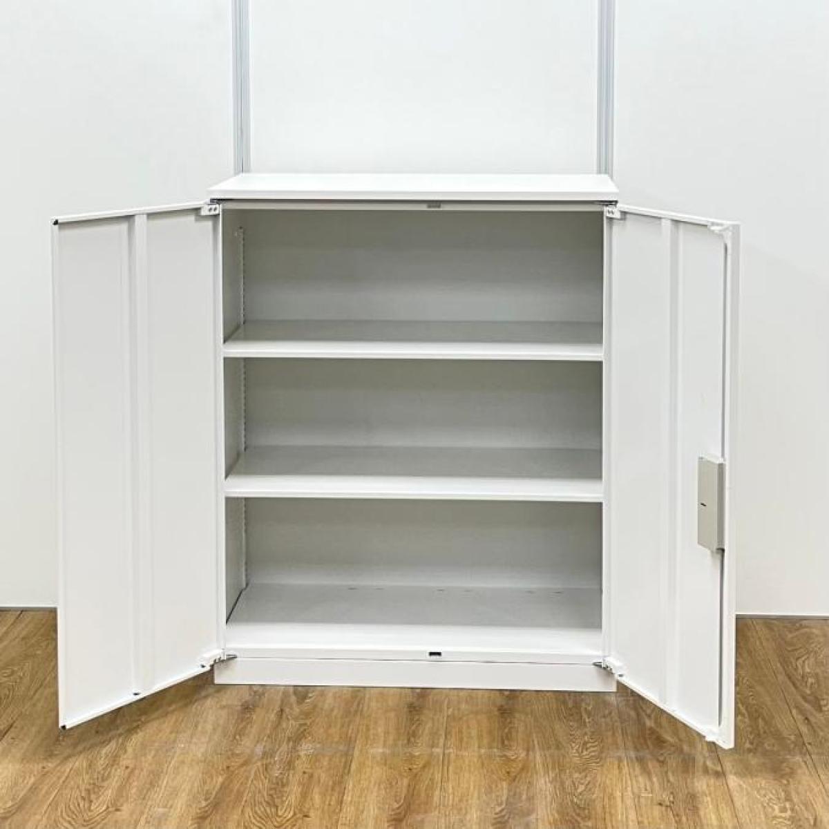 【定価約7万円】【書類だけでなく備品の整理にも便利!奥行500㎜の両開き書庫!】■イトーキ シンライン ■ホワイト ■シリンダー錠