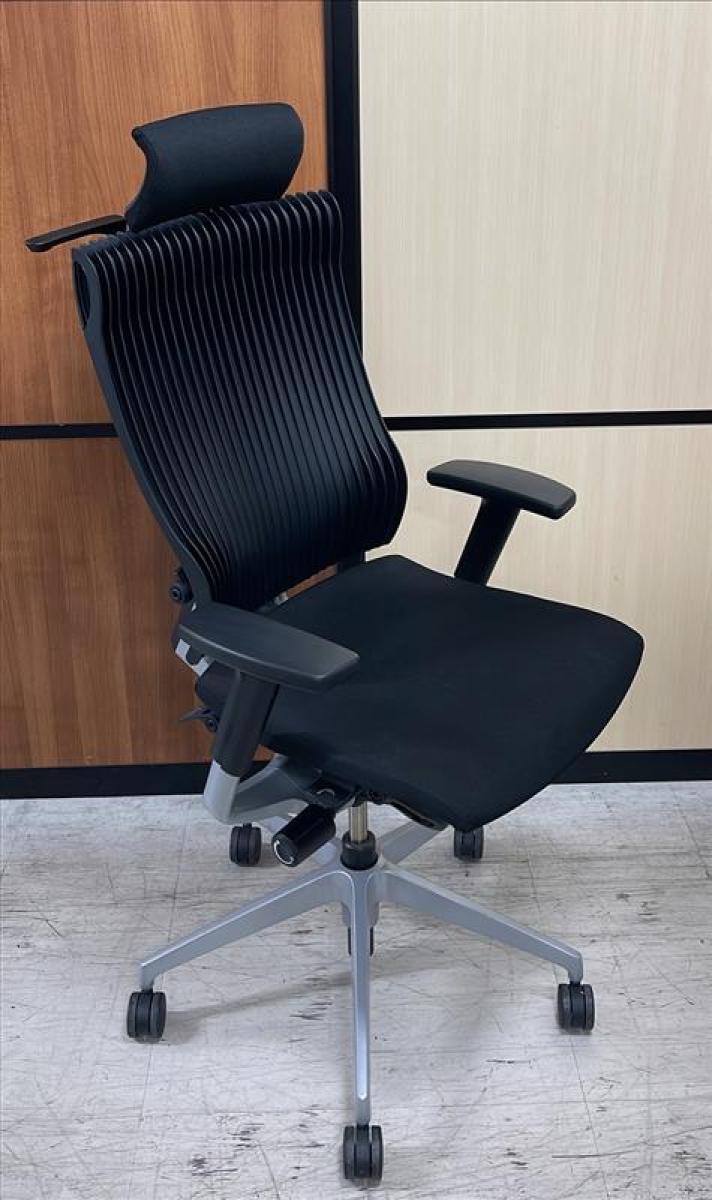 【独創的なフォルムでデザインと快適性の融合を実現!】■イトーキ(ITOKI)製 スピーナ(Spina)チェア エクストラハイバック エラストマータイプ ■ブラック ■可動肘 ■ヘッドレスト付き ■コートハンガー付- 新大阪店