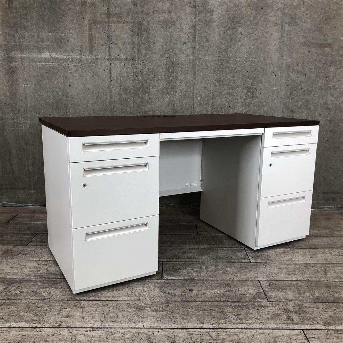 【広々としたワークスペースと収納力で作業効率アップ!上長デスクとしてもオススメ!】■ウチダ(UCHIDA)製 スカエナ(SCAENA)シリーズ 両袖デスク W1400×D700mm ■配線Sタイプ ■シリンダー錠 ■ホワイト/天板:ブラウン ※一部部材欠品商品となります。 【弊社使用欄:A01049969】【KN】- 渋谷サテライト