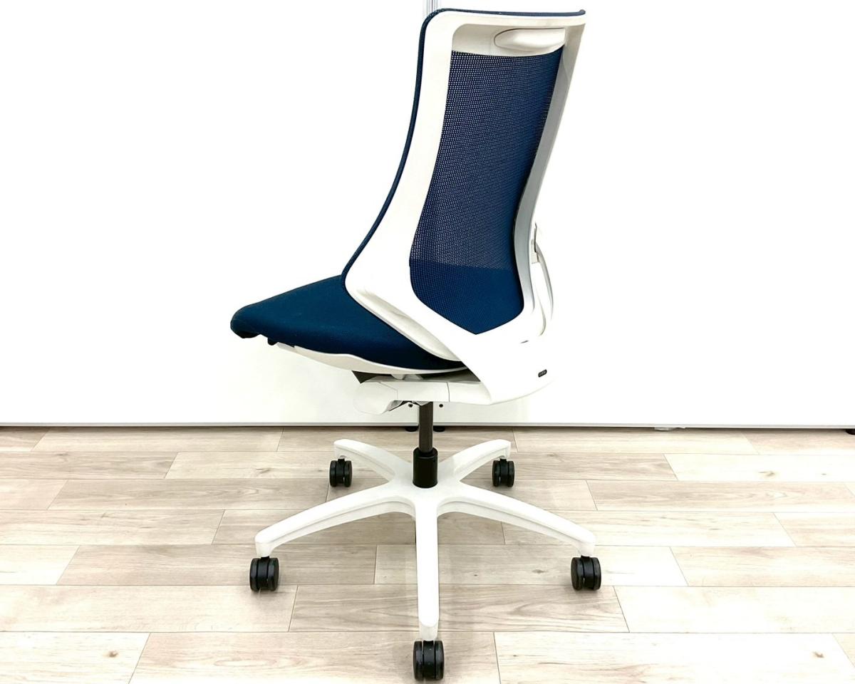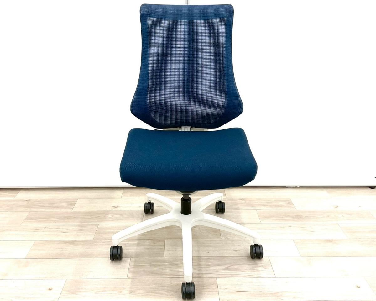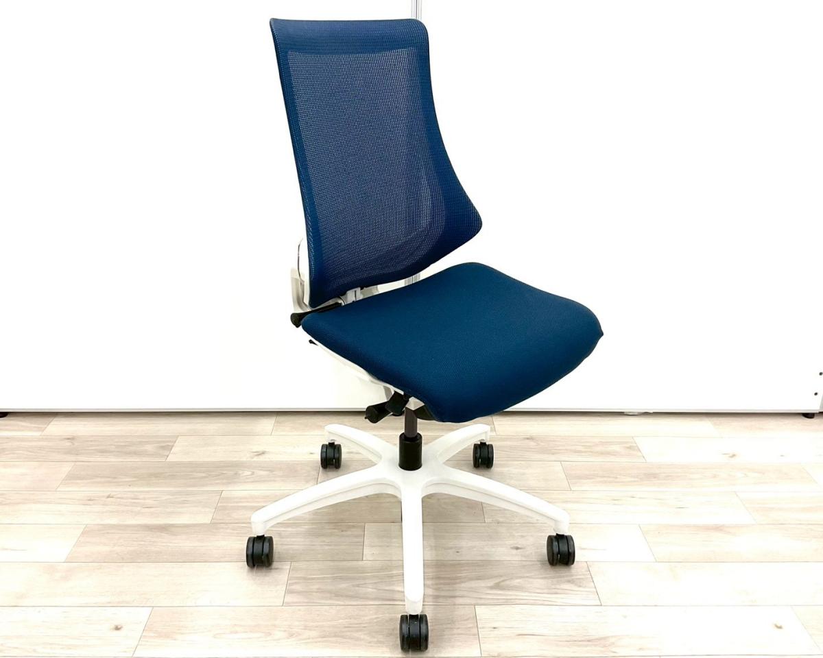 【スタイリッシュで座り心地も抜群!高機能チェア入荷!】■イトーキ(ITOKI)製 エフ(f)チェア 肘無しハイバック ■メッシュ背面 ■ネイビーブルー × ホワイトフレーム【弊社使用欄:A01017463】