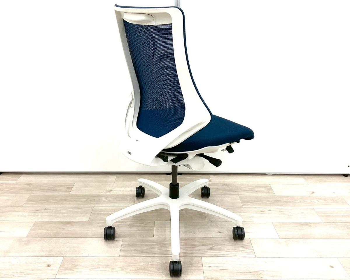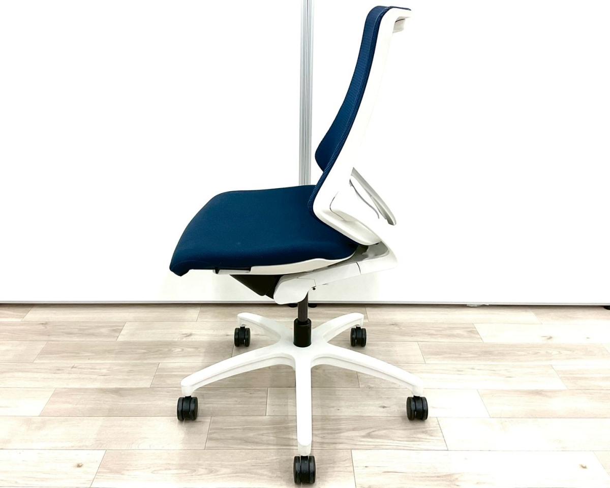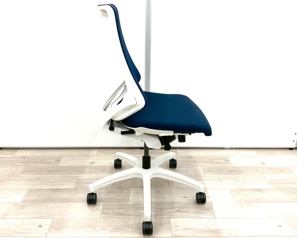 【スタイリッシュで座り心地も抜群!高機能チェア入荷!】■イトーキ(ITOKI)製 エフ(f)チェア 肘無しハイバック ■メッシュ背面 ■ネイビーブルー × ホワイトフレーム【弊社使用欄:A01017463】
